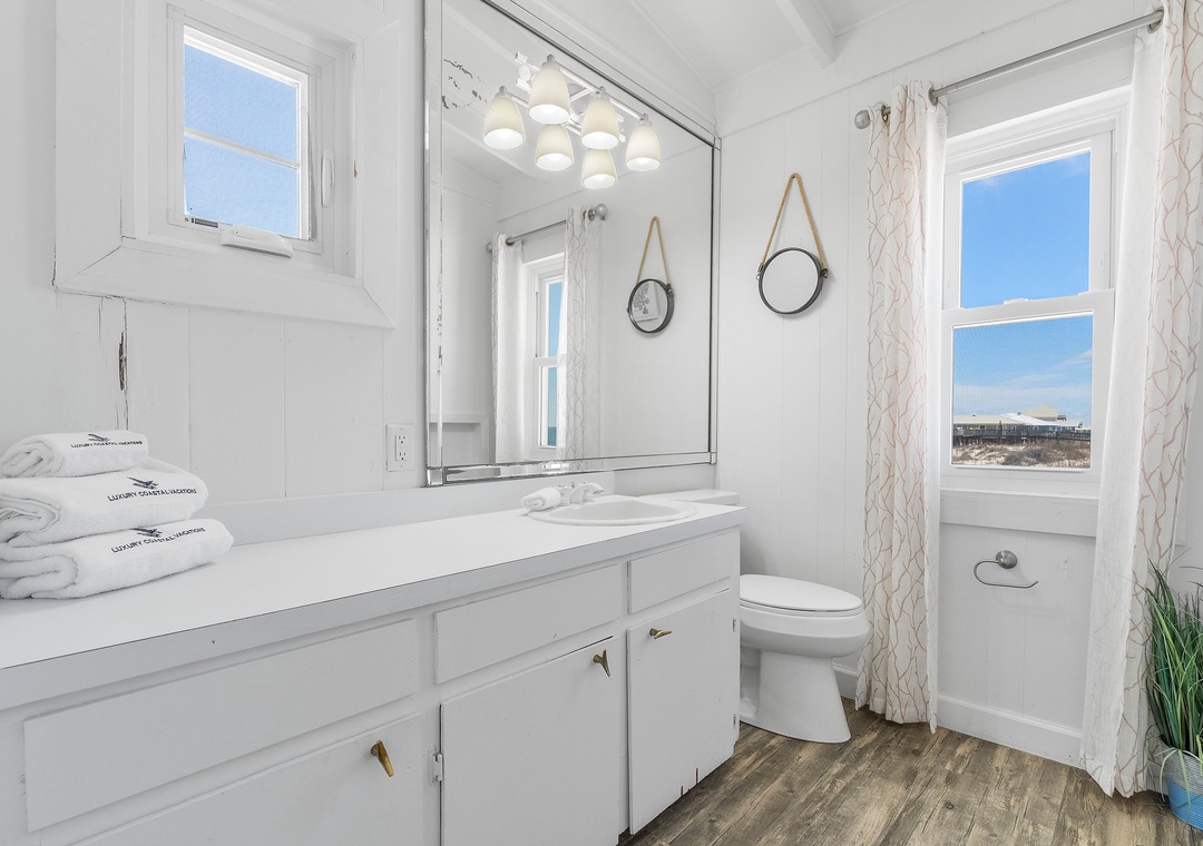 We just recently completed a fantastic three week stay at Bama Breeze. You could not have a more perfect location, literally right on the beach. The house has a full length covered porch and a huge two tiered deck leading down to the beach. There are four chairs provided for outdoor seating so if you have more people with you will need provide additional chairs. As with any beach house there is wear and tear evident. But the kitchen/living area is very nice and the master suite is awesome with amazing views. The kitchen is fully stocked with everything you’ll need. Also plenty of bath towels are provided with starter bath soap, shampoo etc.. Bama Breeze is all about the location, perfect sunrise and sunset views. The team at Luxury Coastal Vacations was awesome. They quickly responded to any questions or needs, going so far as to getting us a new grill within a day. You can’t go wrong bookings through them.from Egg Harbor, WI - Reviewed On: 3/24/2025