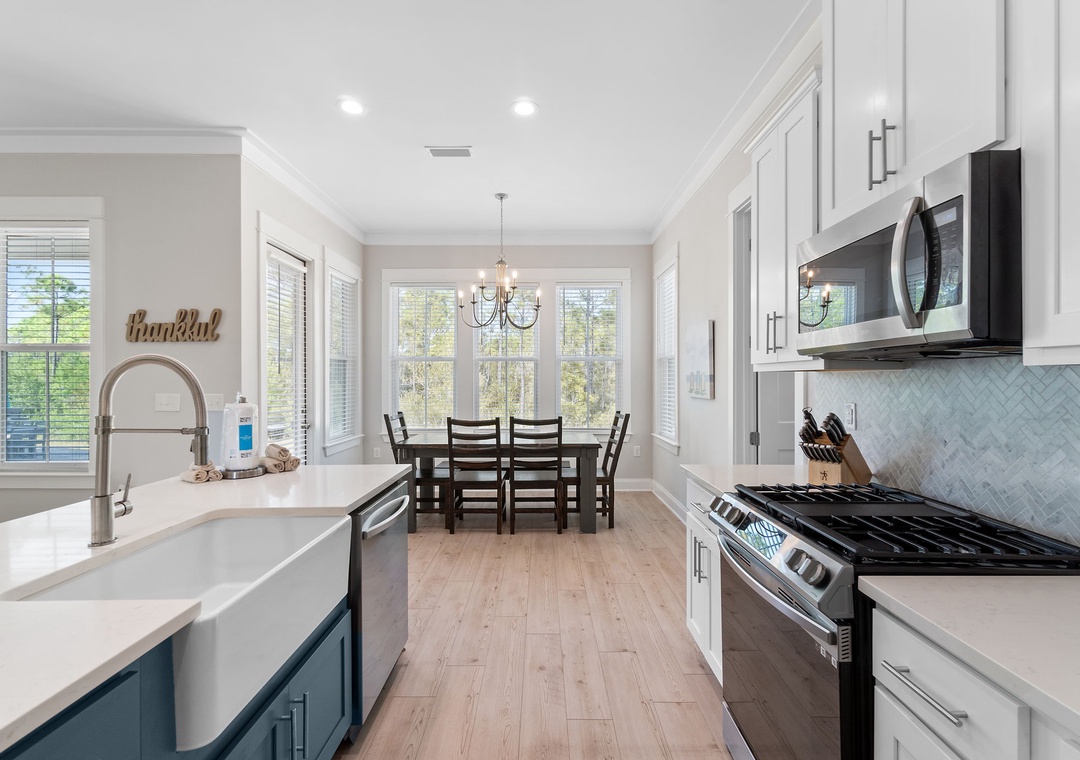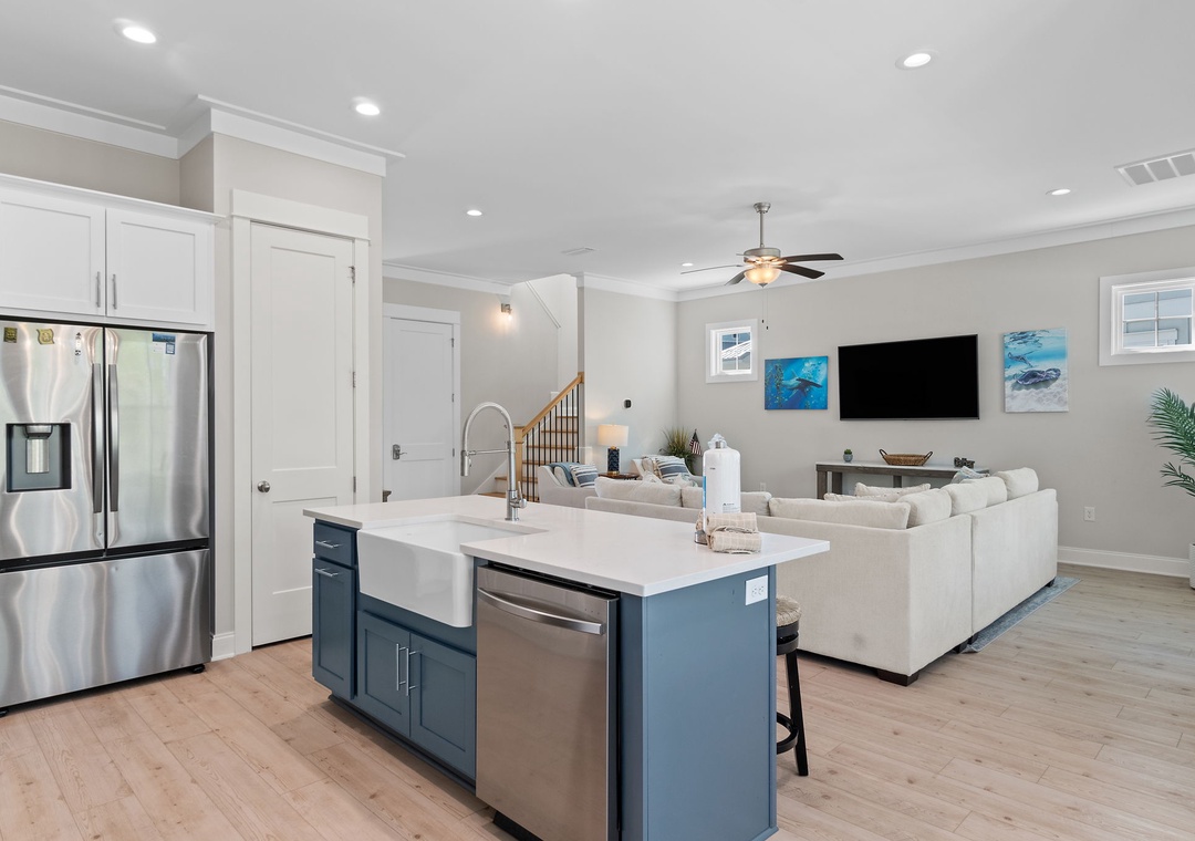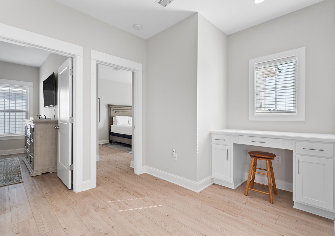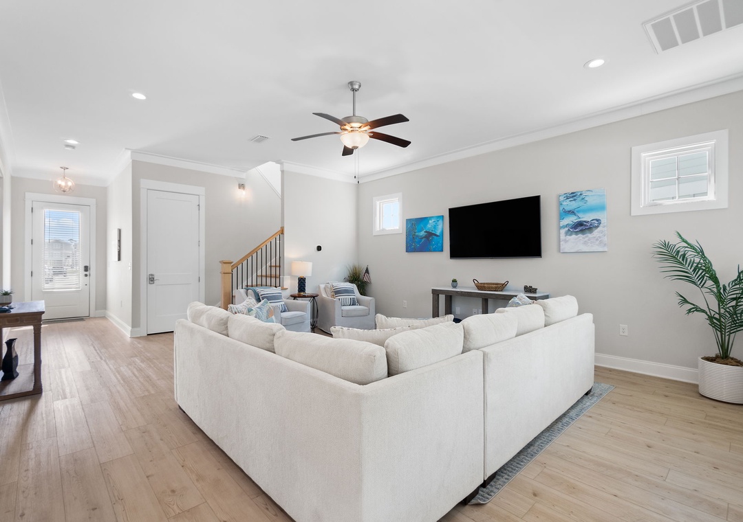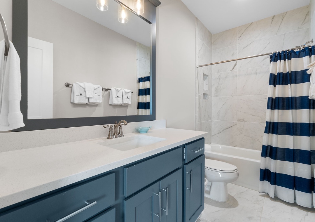 The four fabulously appointed bedrooms are designed with your comfort in mind. The expansive upstairs master retreat features a king-size bed with luxurious linens and a premium mattress, and an attached bathroom. The ensuite bath is a sanctuary with a gorgeous walk-in tiled shower and a soaking tub, perfect for unwinding after a day at the beach. The second and third bedroom each have a queen sized bed and both full bathroom. The fourth bedroom features a twin over full bunk bed, twin over twin bunk bed and full ensuite bathroom.