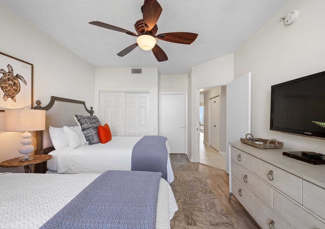 We loved the master walk in closet and spacious bathroom where our baby and toddler could sleep un disturbed from the rest of the family. You do have to rent a pack n play or high chair, but the $25 fee for the rental period wasn’t too bad. The condo is gorgeous, and it’s right on the beach with amazing views from every room! Be prepared if you plan to cook. We didn’t even have salt. Overall 5 stars though!- Reviewed On: 8/16/2025