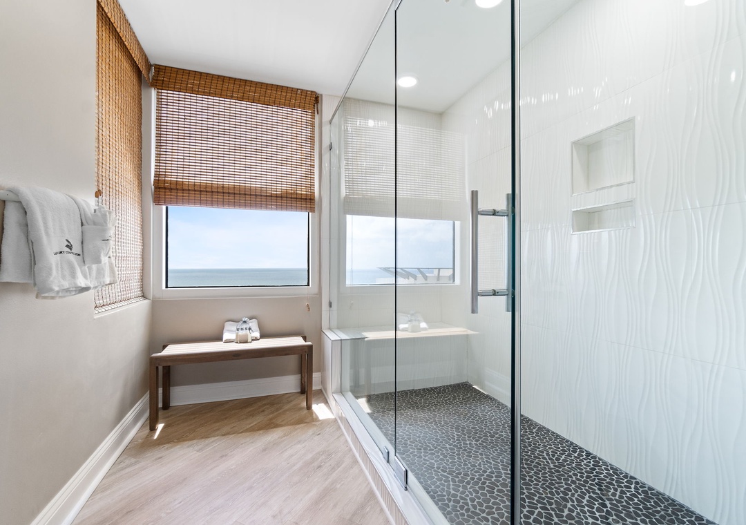 The location is great. You have views up and down the ocean. You see the moon shining on the water and the sun coming up. The terrace is very large with doors from living room & bedroom. Shower in one of bedrooms is large. Bathroom has 2 great windows facing ocean. Easy access to beach. Furniture is fine. Staff was very attentive with texts. The only suggestion I would make is to bring your own pillows as pillows are small & hard. And bring your own bath towels as these were no better than what you might get at a Comfort Inn. A great place to stay.- Reviewed On: 5/28/2021