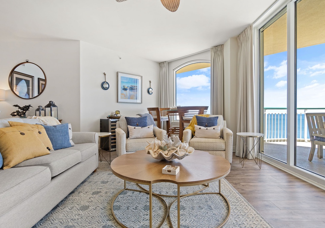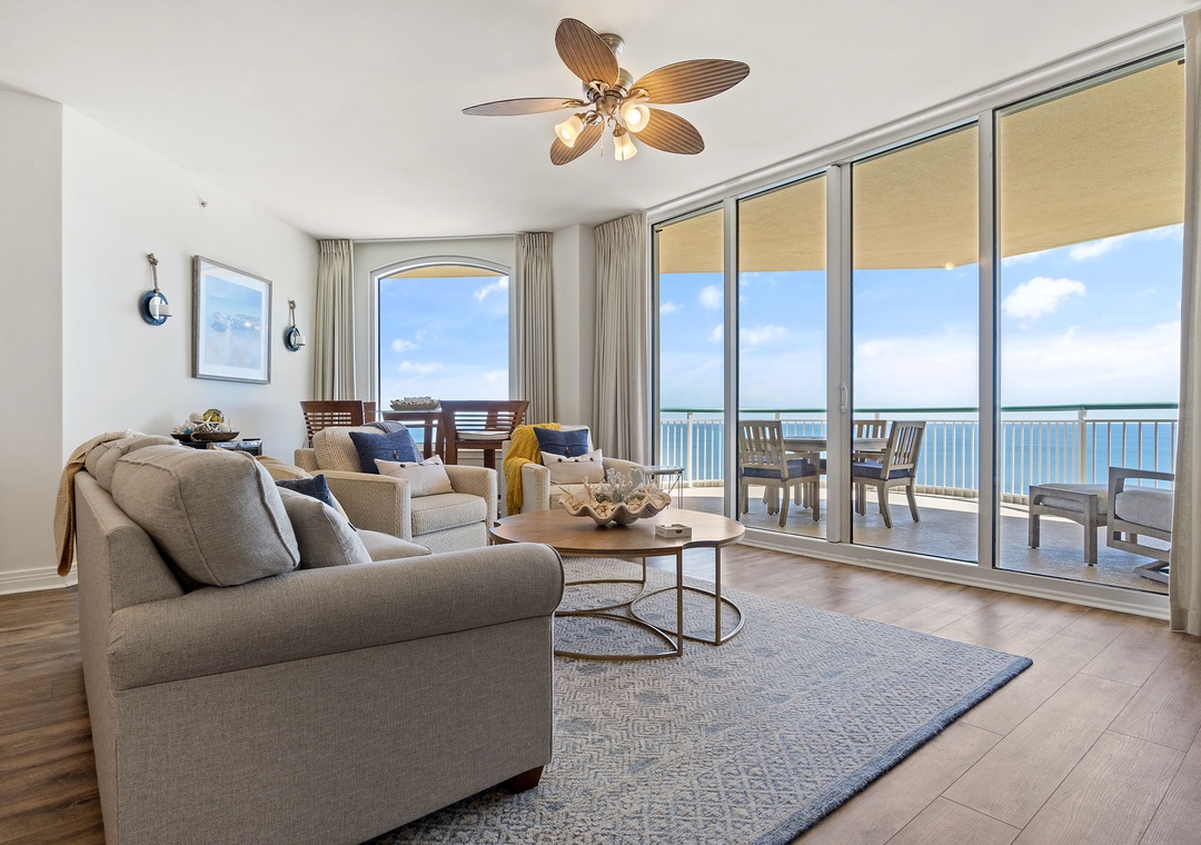 You'll know you're at the beach when you step into this absolutely stunning 17th floor unit. The open concept layout gives a spacious and inviting feel, bringing the beach right into your living area! A large LCD television and plush furnishings offer comfortable living for watching your favorite team or a movie with the family. 300 square feet of gulf front terrace offer panoramic views of the sparkling Gulf Coast. The Eastern view affords an incredible picturesque scene reachign as far as Pensacola Beach! You'll also enjoy preparing your favorite meal in the upgraded gourmet kitchen. This condo has been very thoughtfully appointed with high end furnishings and appliances- no detail has been overlooked!