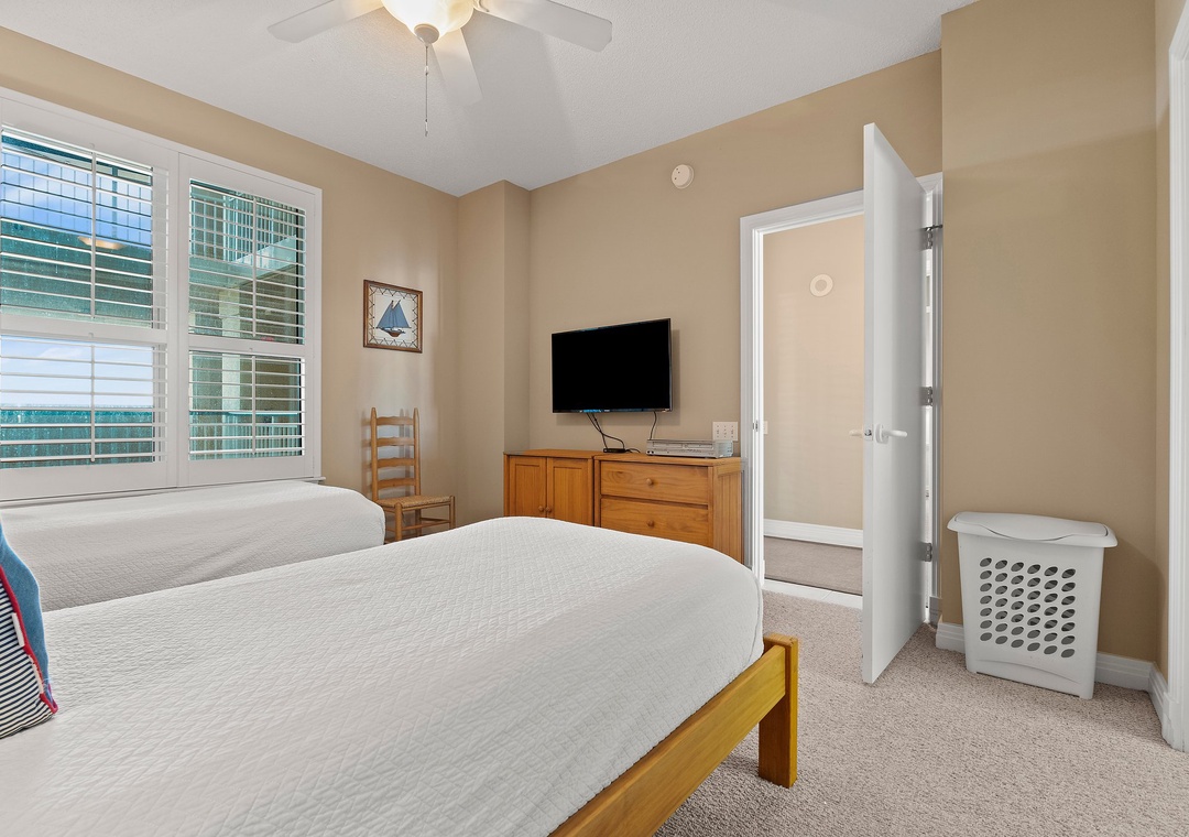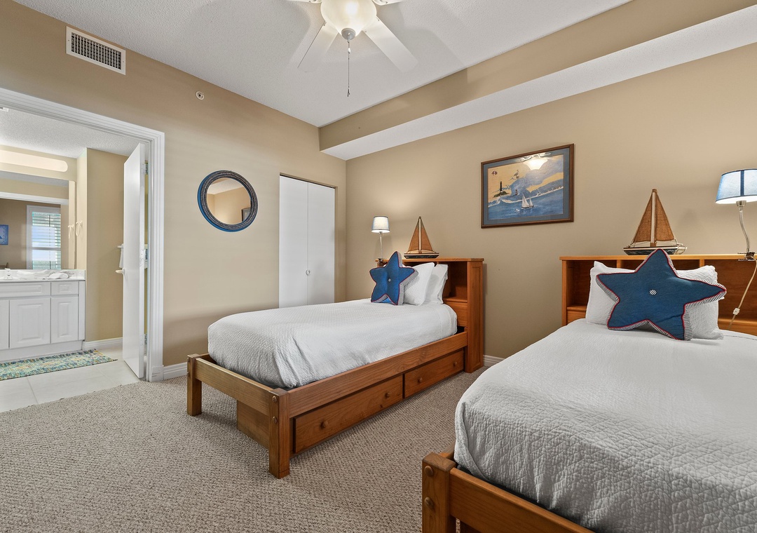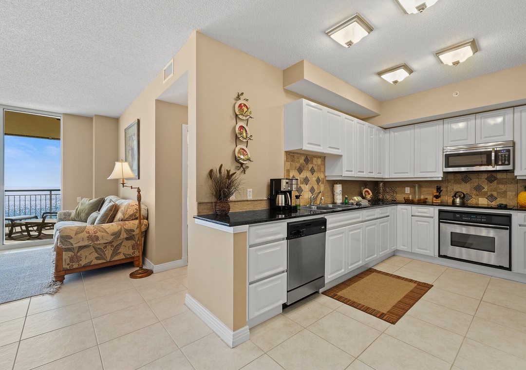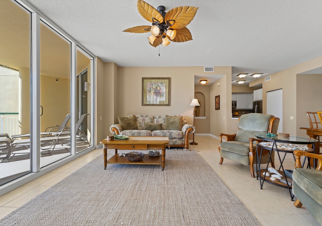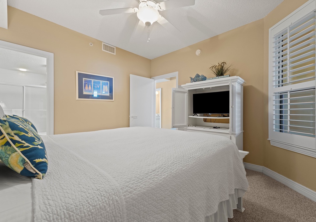 With premium mattresses and luxury appointments in the bedrooms and baths, you'll definitely catch up on some much needed rest and relaxation during your vacation. The master bedroom offers a queen size bed and balcony access, and the adjoining glamour bath includes a jetted tub, separate walk in shower, and twin vanities. The 2nd bedroom also offers a queen with private bath, and the 3rd bedroom offers 2 twins and a conjoined bath. The living room sofa can be converted into a queen sleeper, allowing comfortable sleeping accommodations for up to 8!