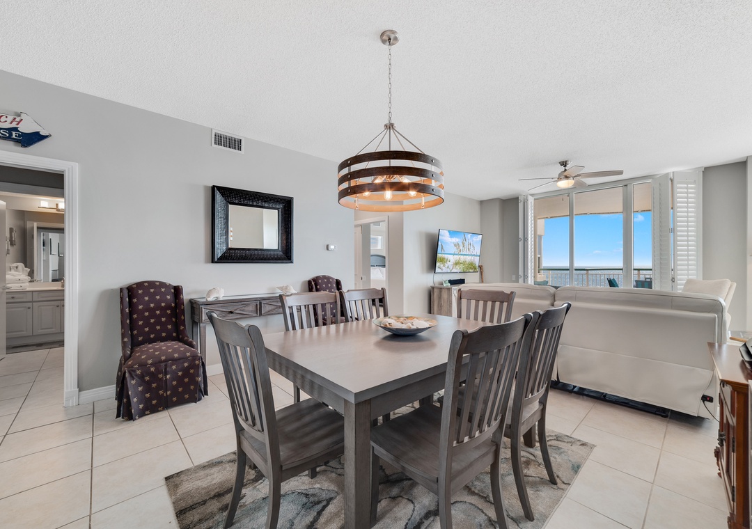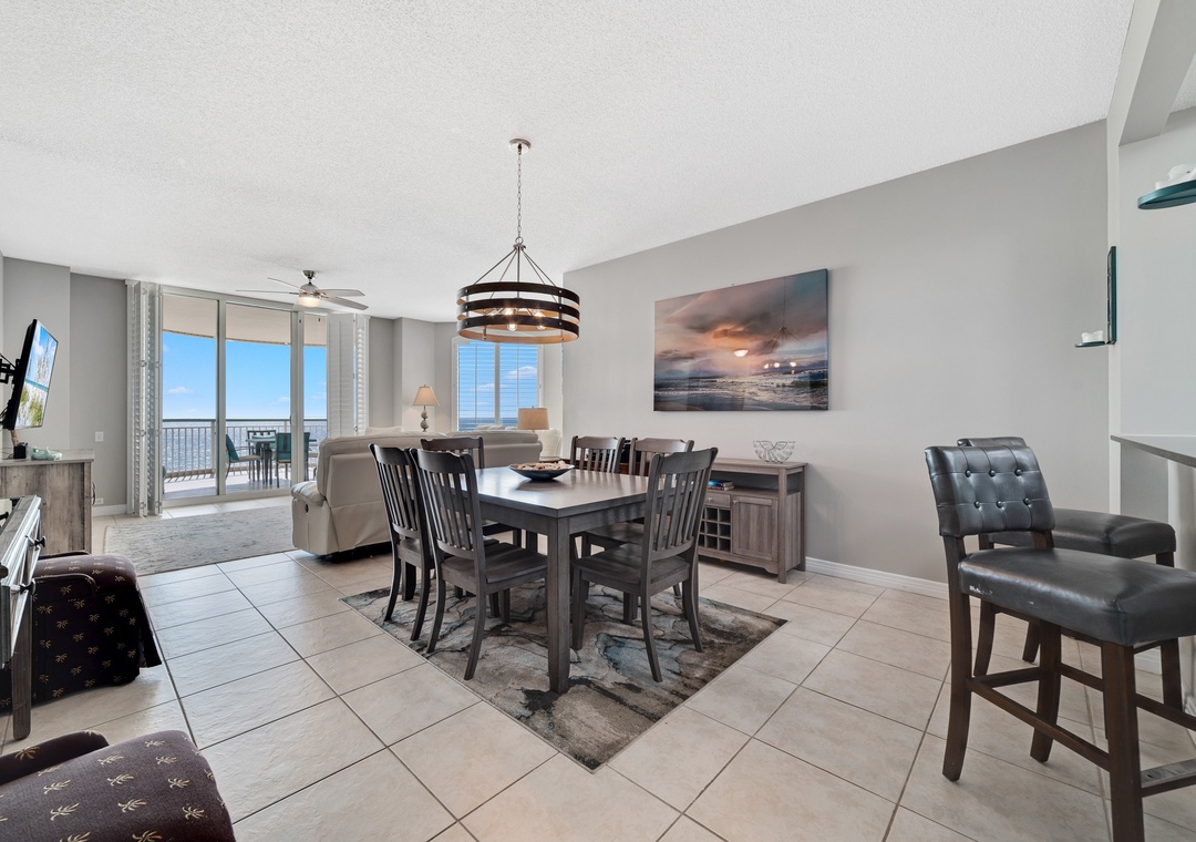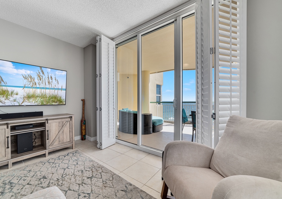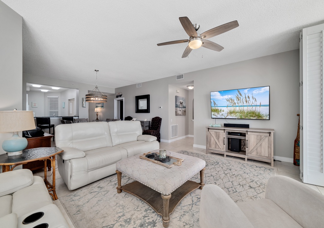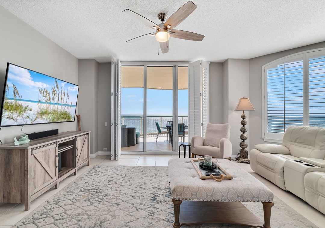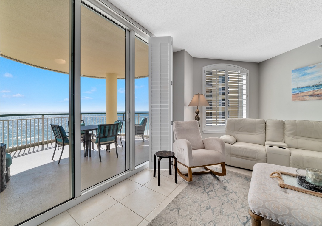 This spacious yet cozy Gulf front retreat boasts comfortable furnishings, stylish decor, updated electronics and appliances, and luxurious touches throughout. The living room offers plenty of seating where the whole family can lounge, not to mention the sliding glass doors that lead out to the expansive covered beachfront balcony!