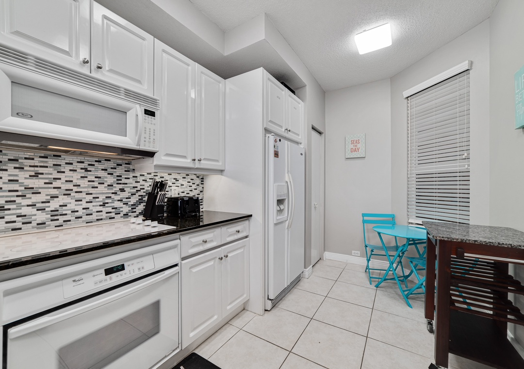 Prepare a culinary masterpiece in the gourmet kitchen, boasting new appliances, granite counter tops, and all the small appliances, utensils and cookware needed to whip up a scrumptious meal and impress your family and friends!