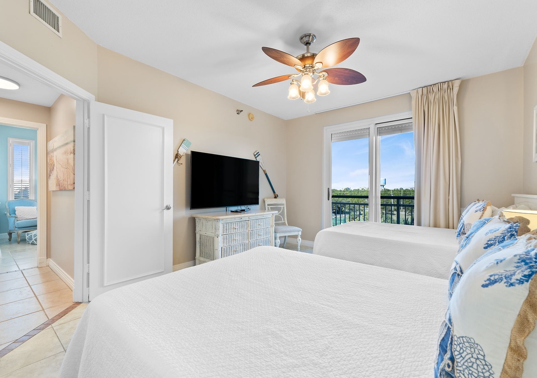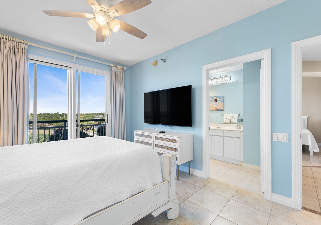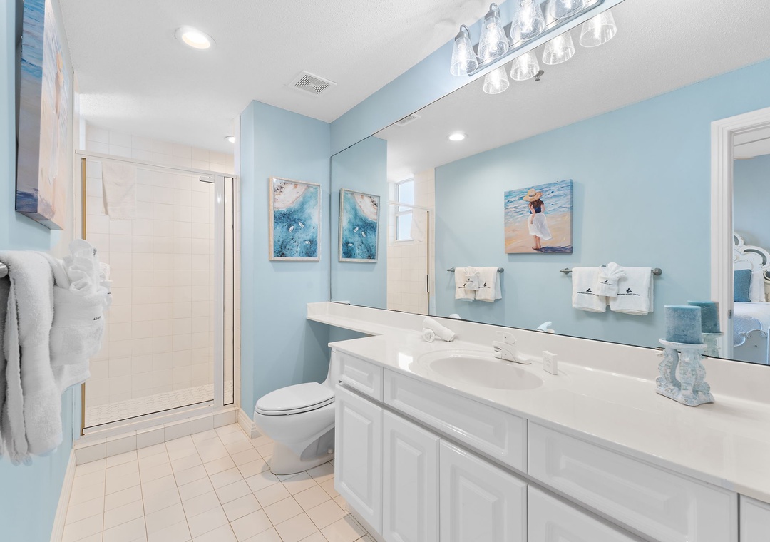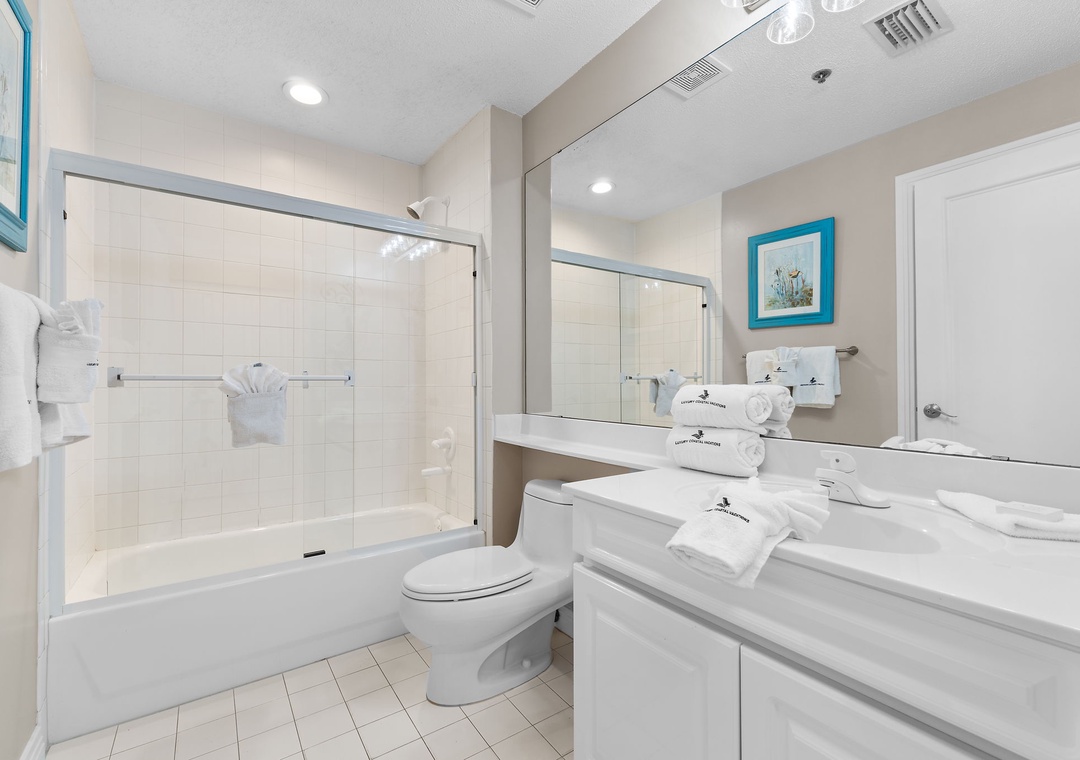The living area affords comfortable yet stylish furnishings, perfect to gather with family and friends. This unit is outfitted with Smart TVs in each room for easy streaming. You will certainly indulge in some much needed rest and relaxation in the master retreat, boasting a cozy king bed with a premium mattress set and high thread count linens. The attached bath offers a vanity area with plenty of space, a walk in shower and large garden tub. The first guest bedroom offers a plush queen bed with a private bathroom. The second guest bedroom offers two full beds. The third bathroom is accessible from the guest room and hallway!