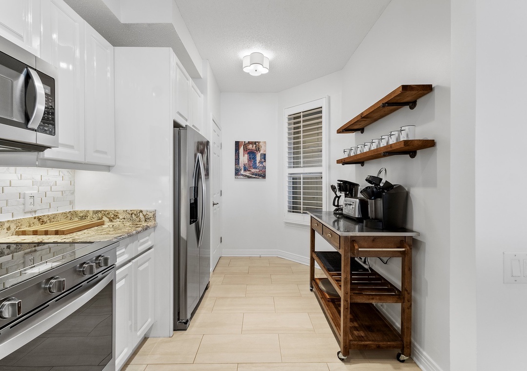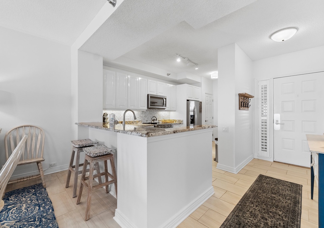 The gourmet kitchen features all the cookware, dishware, utensils, large and small appliances needed to prepare a culinary masterpiece. The dining table just off the kitchen offers seating for 6 with additional seating at the breakfast bar.