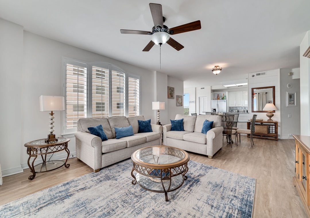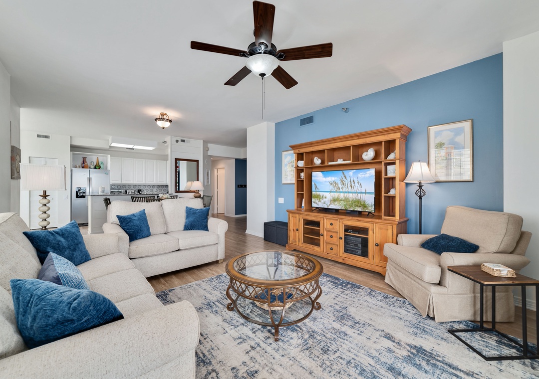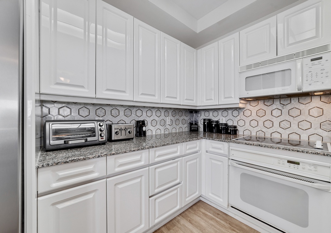Elegantly decorated and thoughtfully designed, this luxurious unit features high-end furnishings, updated electronics, quality linens, and spectacular Gulf Coast views. The living area is stylish and inviting, with floor-to-ceiling sliding doors that open to a spacious 300-square-foot gulf-front balcony—perfect for enjoying your morning coffee or an evening cocktail while the soothing sounds of the waves wash over you. The fully equipped kitchen is a joy to cook in, with all the cookware, dishware, and utensils you'll need, plus a dining area with a beautiful table and additional seating at the breakfast bar. The master bedroom offers a king-sized bed and an ensuite bath, while the second bedroom also has a king bed, and the third bedroom features a queen bed. Indulge in luxury with fine linens, oversized monogrammed bath towels, and deluxe bath amenities, plus a queen sleeper sofa for extra guests.