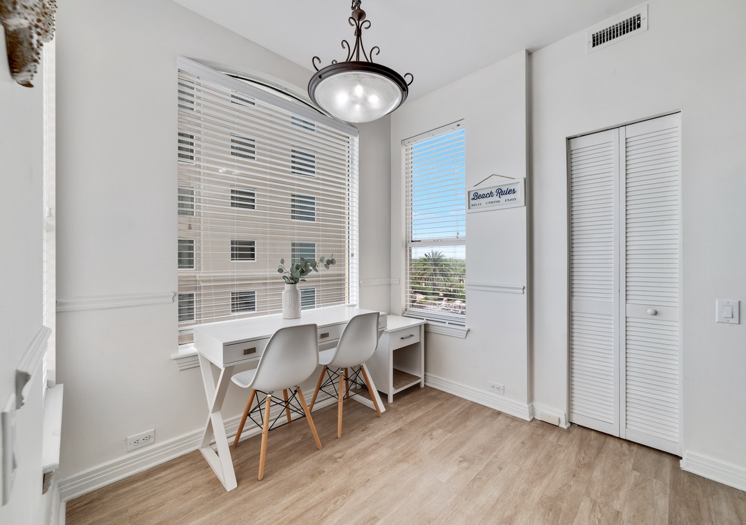 Just a few floors from walking straight out to the pool and beach! This lovely condo was spacious for our family of four and made it easy to remote work and school. It had all the needed amenities including fast wifi. The property management was easily accessible by text and phone, too!