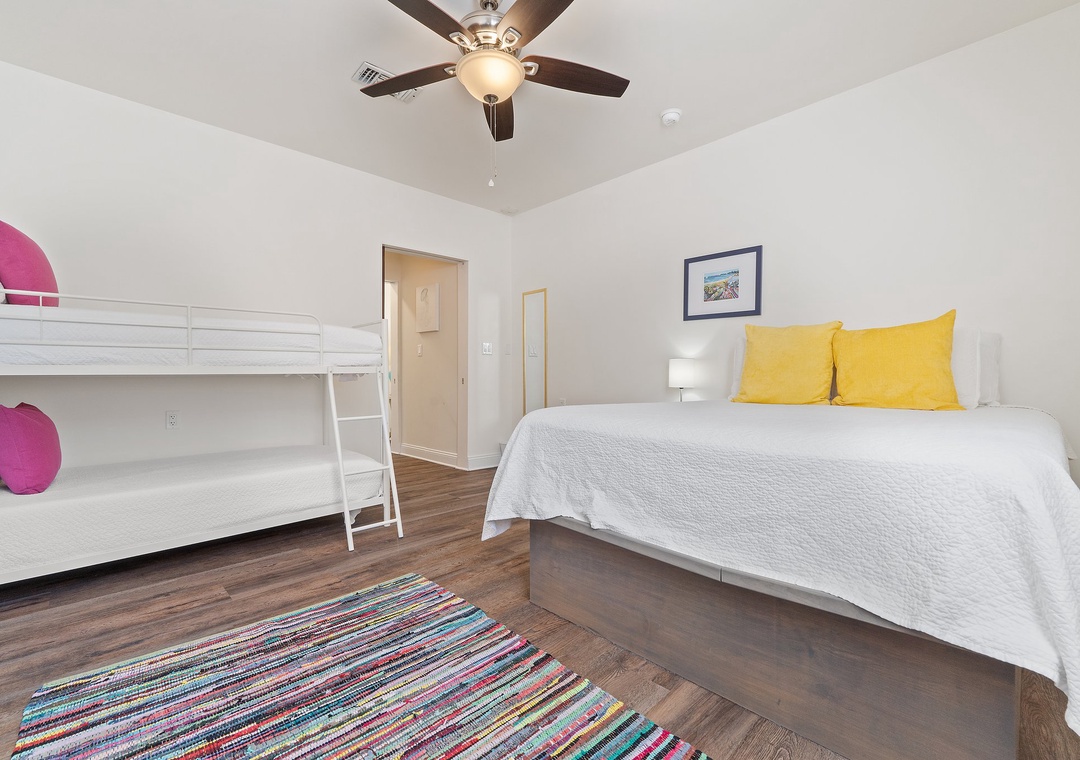 Bedroom 1- Queen Bed, Twin over Twin Bunk