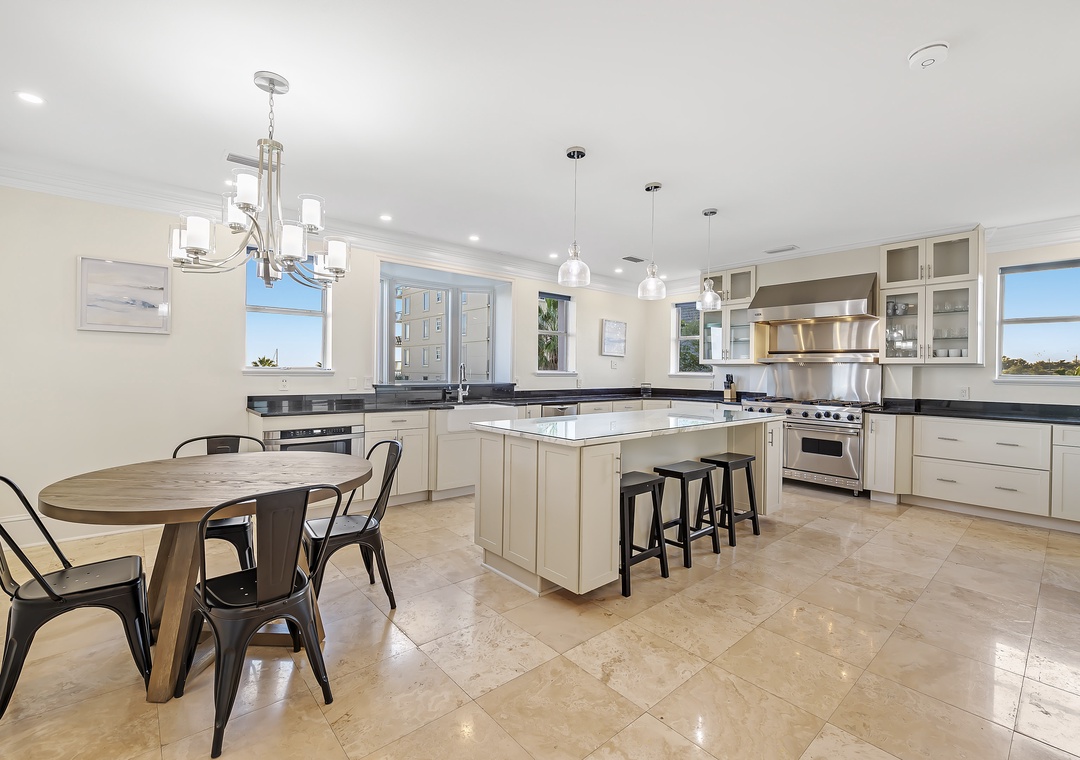The Estate comprises two roomy Villas and a loft suite, comfortably accommodating up to 32 guests. The Waterfront Villa offers 3 bedrooms, a deluxe Chef's kitchen that will delight any culinary maestro, an elevator, and 3 balconies affording amazing beach views from each.Â