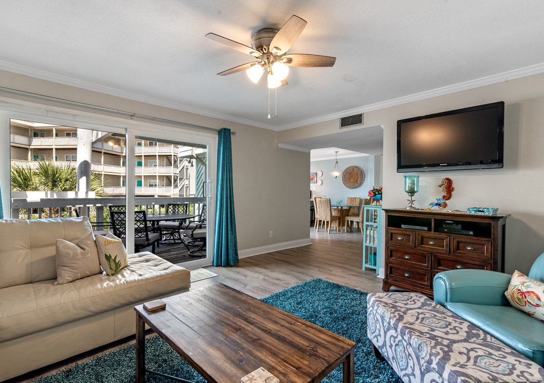 Retire after a long day of recreation to one of 2 luxuriously appointed bedrooms and catch some serious z’s on your vacation! With each offering premium mattress sets, high thread-count linens, and wall-mounted flat screen TVs, you’re sure to enjoy quality rest and relaxation during your much-deserved getaway. The master bed features a king bed. Pamper yourself after a day on the beach in the master’s ensuite bathroom, complete with plenty of counter and cabinet space. The second bedroom features 2 queen beds. There is a convenient half bath for guests, and the living room sofa can be converted into a queen sleeper, affording comfortable accommodations for up to 8 throughout!