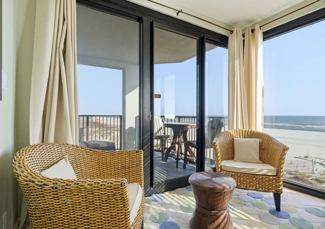 Broadmoor 102 offers almost 1450 square feet of luxe living and a spacious open-concept floor plan. The living area hosts a plush designer sofa and two soft cushioned chairs, a large LCD television and most importantly, beachfront balcony access! Floor-to-ceiling sliding glass doors open to the expansive covered terrace, and with plenty of seating you can enjoy your favorite beverage and even savor a delicious meal while delighting in panoramic vistas of the sparkling Gulf Coast!