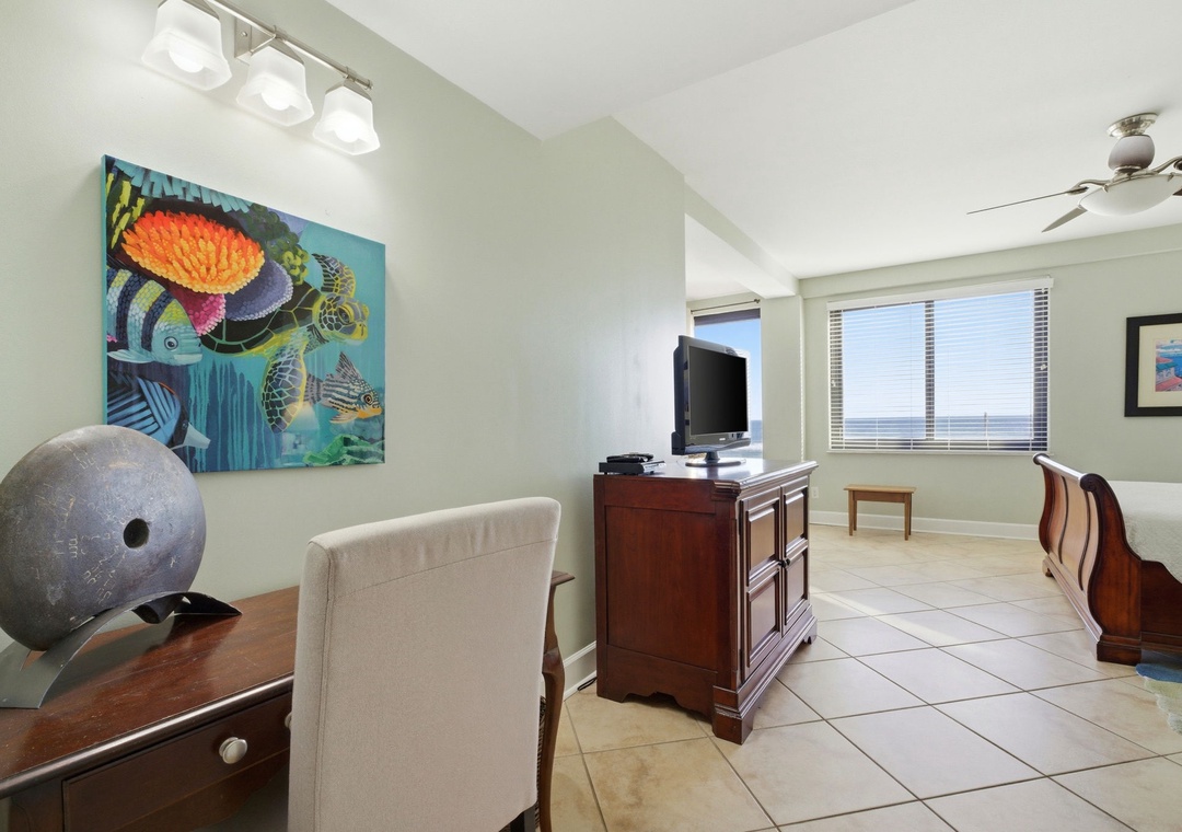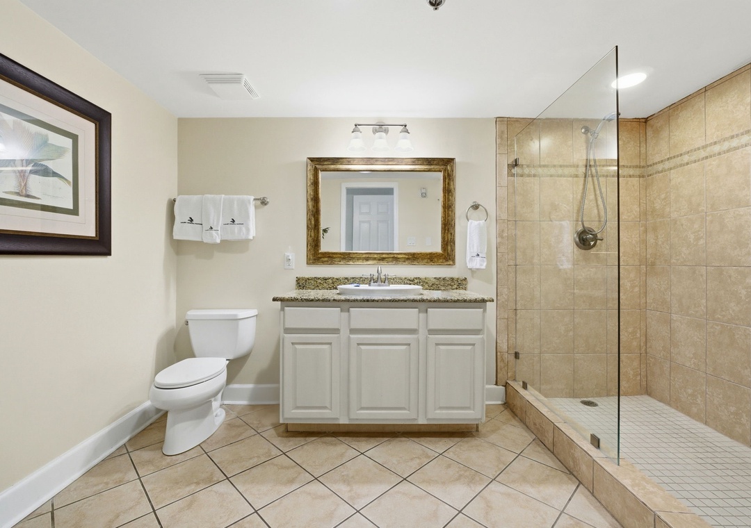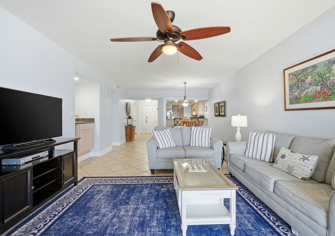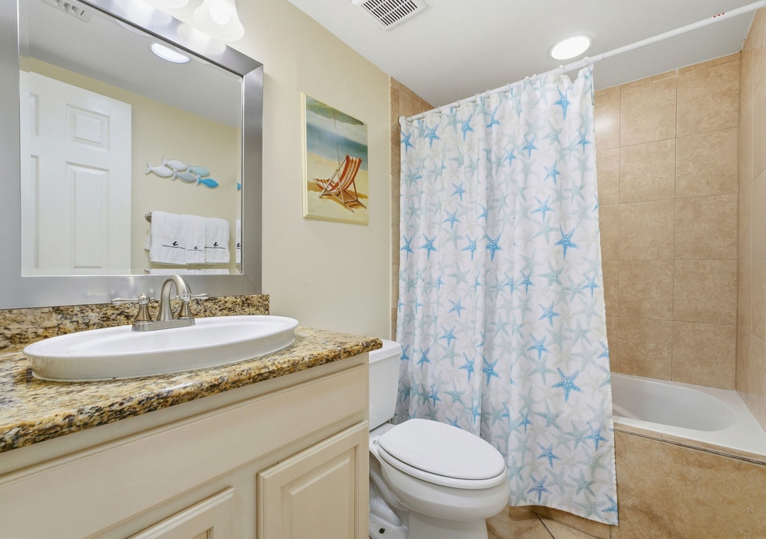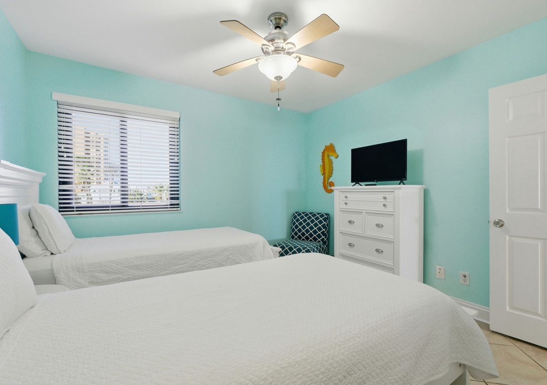The impressive master suite boasts a queen bed with luxurious linens and a premium mattress, and an LCD television with DVD player. The oversized attached master bath offers a large jetted tub, a separate glass walk-in shower, and his and her vanities. You’ll definitely indulge in some much needed relaxation in this master retreat! The second bedroom is elegantly appointed with two twin beds and luxury bedding, an LCD television and an attached bath. This luxury unit also features a full size high efficiency front loading washer and dryer. You get all of the conveniences of a larger condo without the large price tag! Book your vacation today!