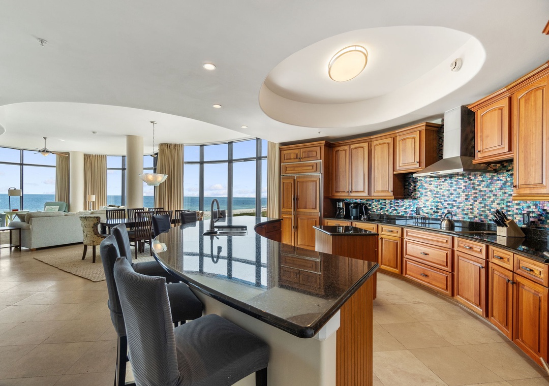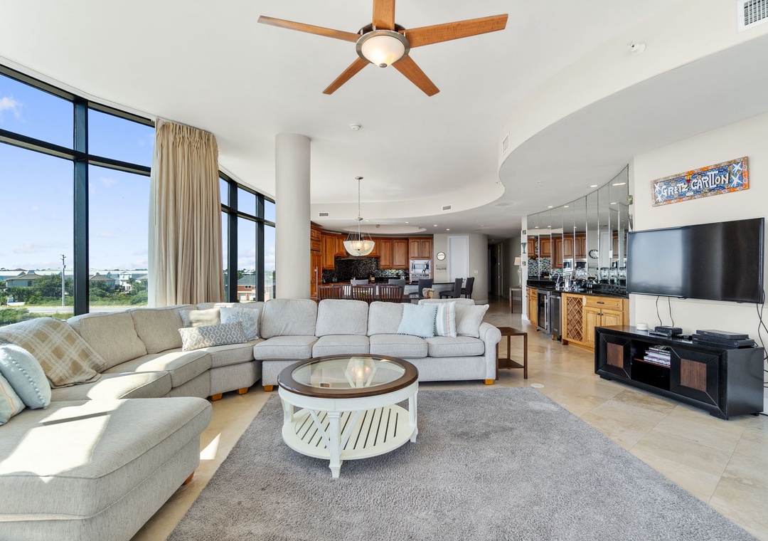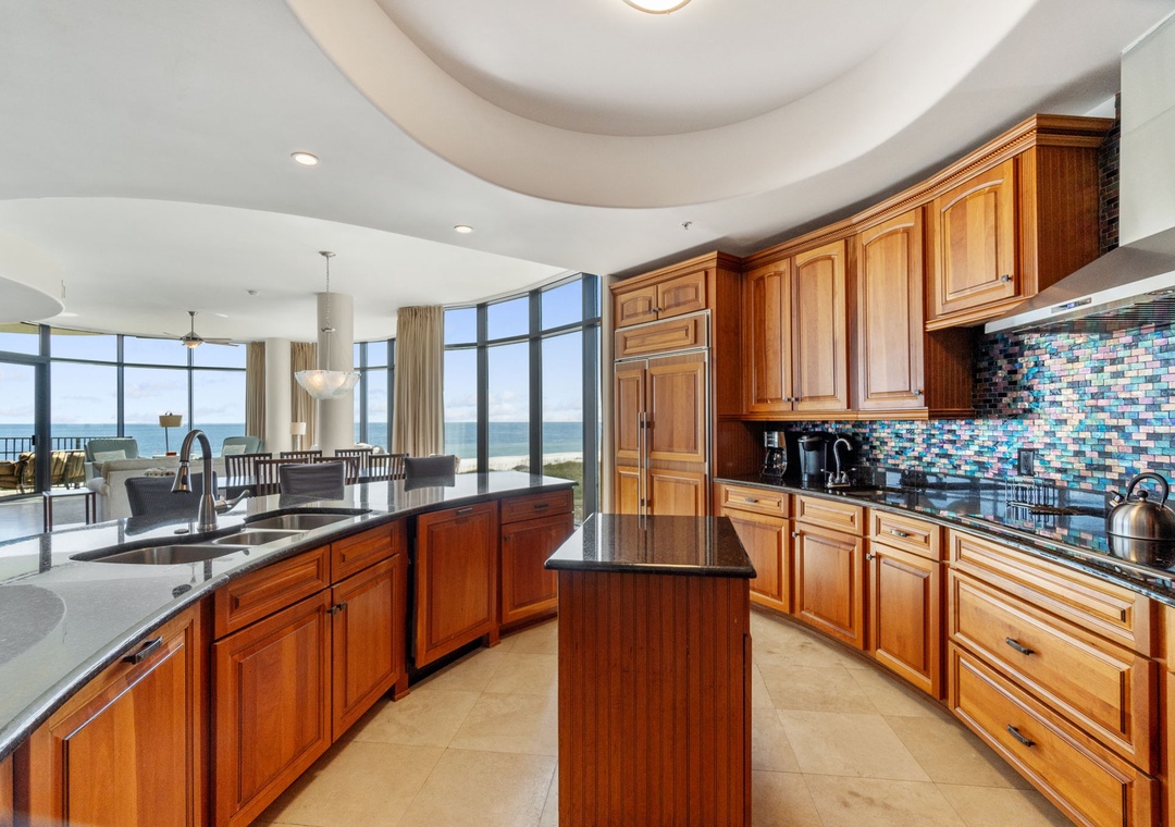 This 4 bedroom unit offers 3500 square feet of luxury, including an open and spacious floor plan, elegant furnishings, high-end finishes, the most amazing views and endless upgrades! Situated on the 2nd floor, this corner unit is conveniently located on the west side of the tower, allowing for spectacular sunset views! The living area is wrapped in floor-to-ceiling windows that highlight the picturesque vistas of the gulf. With plenty of seating and a large flat screen television, you’ll certainly enjoy lounging and watching your favorite movie with the family! The oversized beachfront balcony offers ample seating as well,