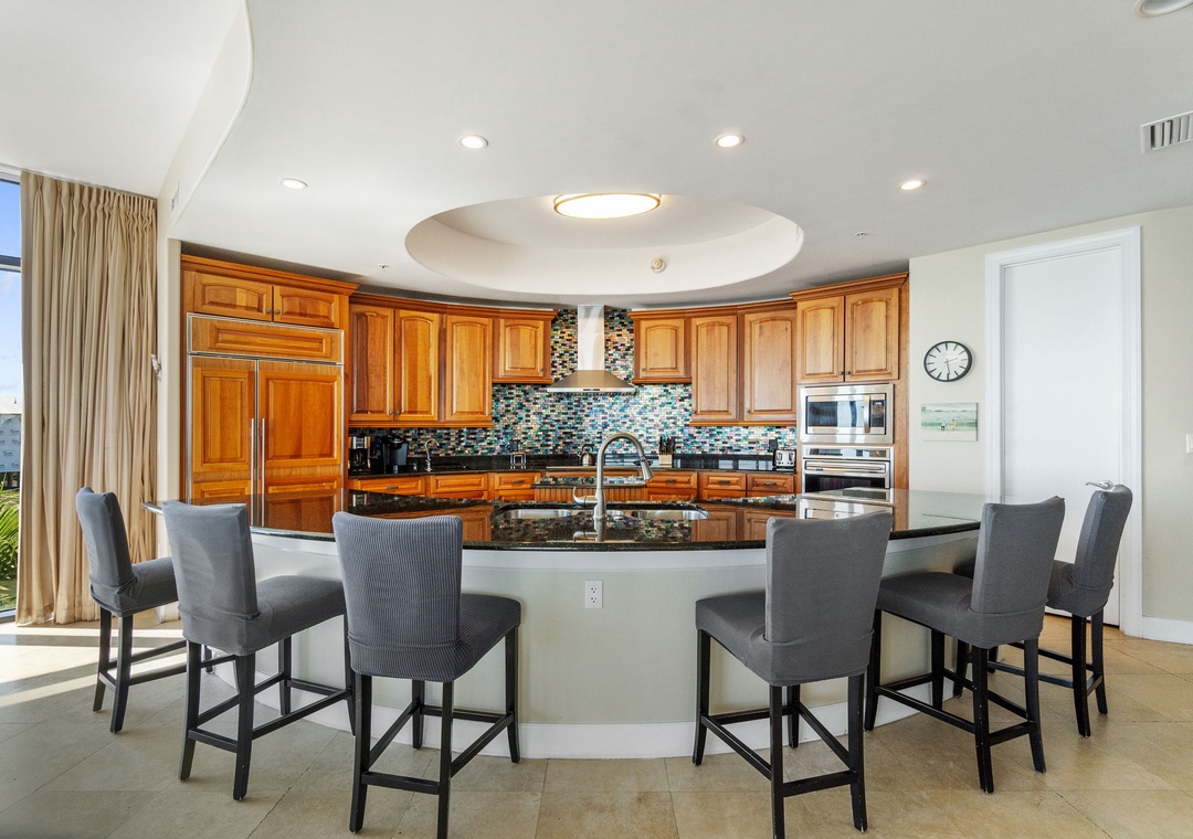 The fully equipped kitchen is sure to impress even the most experienced chef, with professional-grade appliances including a built-in refrigerator, stainless steel wall ovens, a dishwasher, and even a warming drawer! The dining area features seating for 8, plus additional seating at the breakfast bar with granite counter tops. There’s also a wet-bar with an under-counter ice maker and wine chiller, perfect for entertaining! The master suite hosts a beautiful king bed, balcony access and an attached master bath with granite countertops, a separate tiled shower and a jetted garden tub. The second and third bedrooms also feature king beds, and the fourth bedroom boasts two full beds. Each bedroom also offers private baths with granite countertops and oversized garden tubs, deluxe mattresses, luxurious linens and LCD televisions! Capri also offers the ultimate in luxury amenities, including indoor and outdoor pools, a hot tub, steam room, sauna, and fitness center! Paired with its idyllic beachfront location, this complex is the perfect retreat!