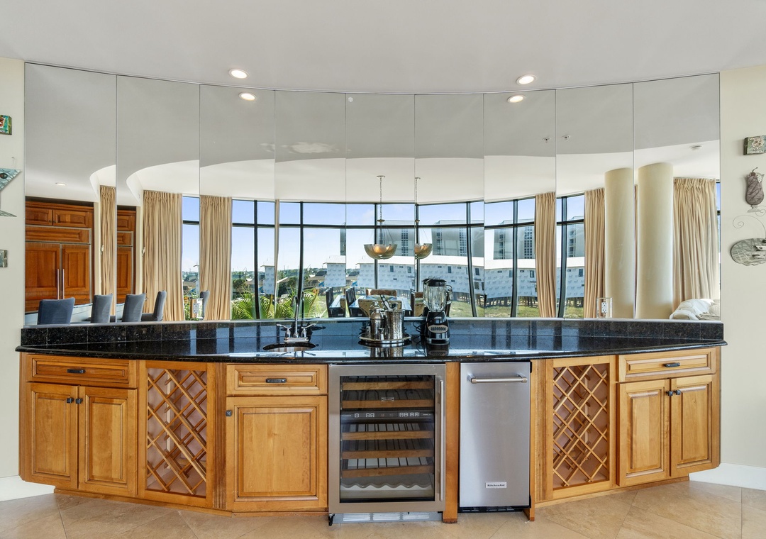 Lovely (super secure) condo on the beach. Kitchen is well stocked with cookware,dishes and silverware, but definitely needs more kitchen towels! We only had 3! Appliance’s were great. We loved the wine cooler and ice maker. Master bedroom was lovely but other bedrooms need mirrors other than the one in the bathroom. Beach area was awesome. Pools were great too but could use a few more lounge chairs. Other than the few items I mentioned the condo was perfect for a group of 8 adults. I would Highly recommend it.- Reviewed On: 5/7/2023