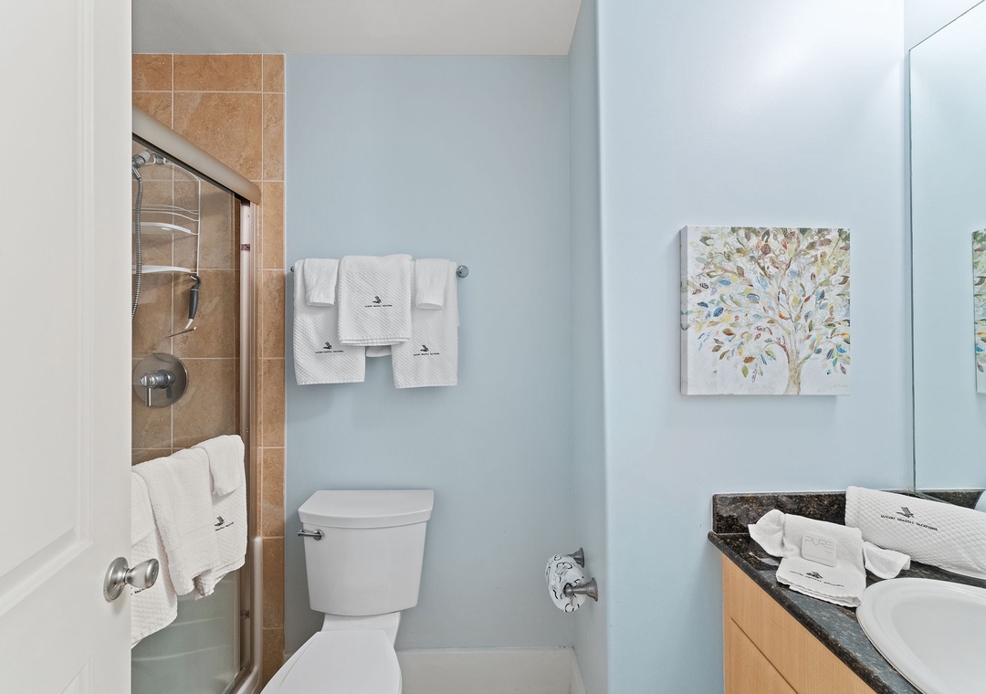 Overall we loved everything about the condo- the location, the layout, even the supplies (kitchen ware/appliance options). We had three family groups (11) people between the kids and parents and we all had space to spread out. Definitely one of our favorite condos on site! The only drawback was that the master bath had a broken shower door and all three toilets had handle issues to work correctly- but the maintenance crew came right away and did their best to get it all to work for our week long stay until parts could be ordered. Very courteous and friendly.- Reviewed On: 8/12/2020