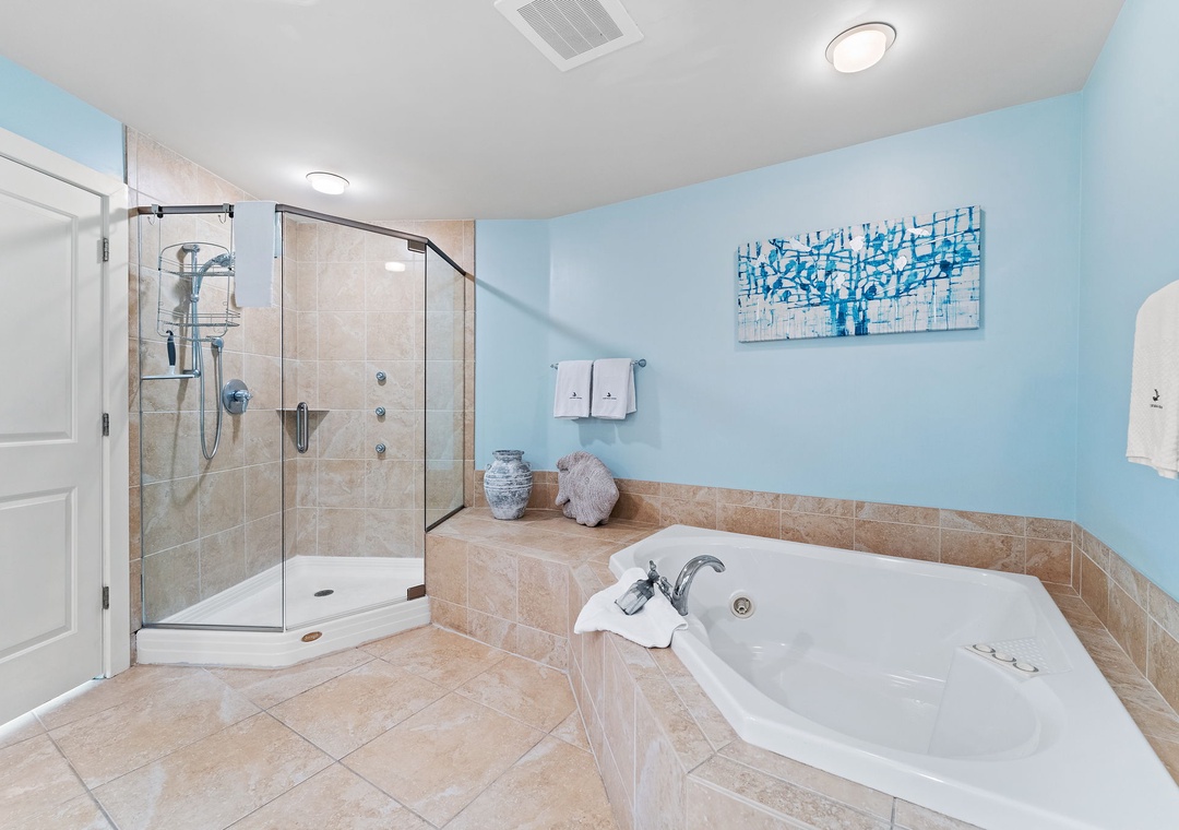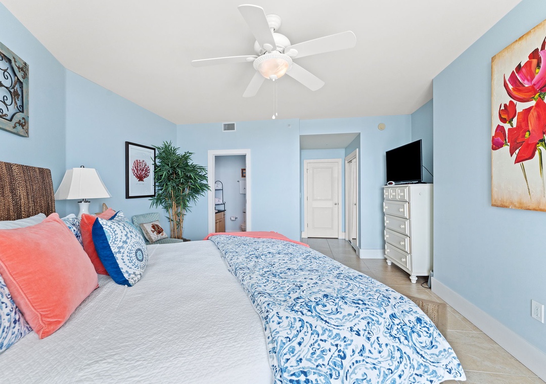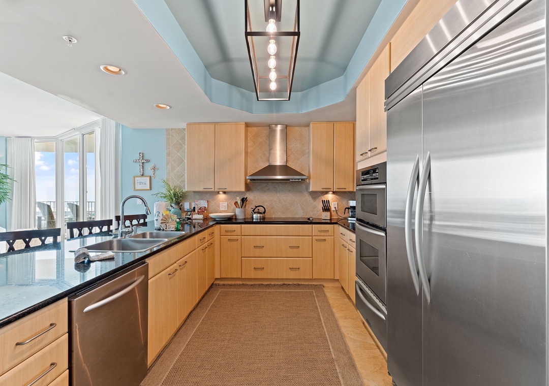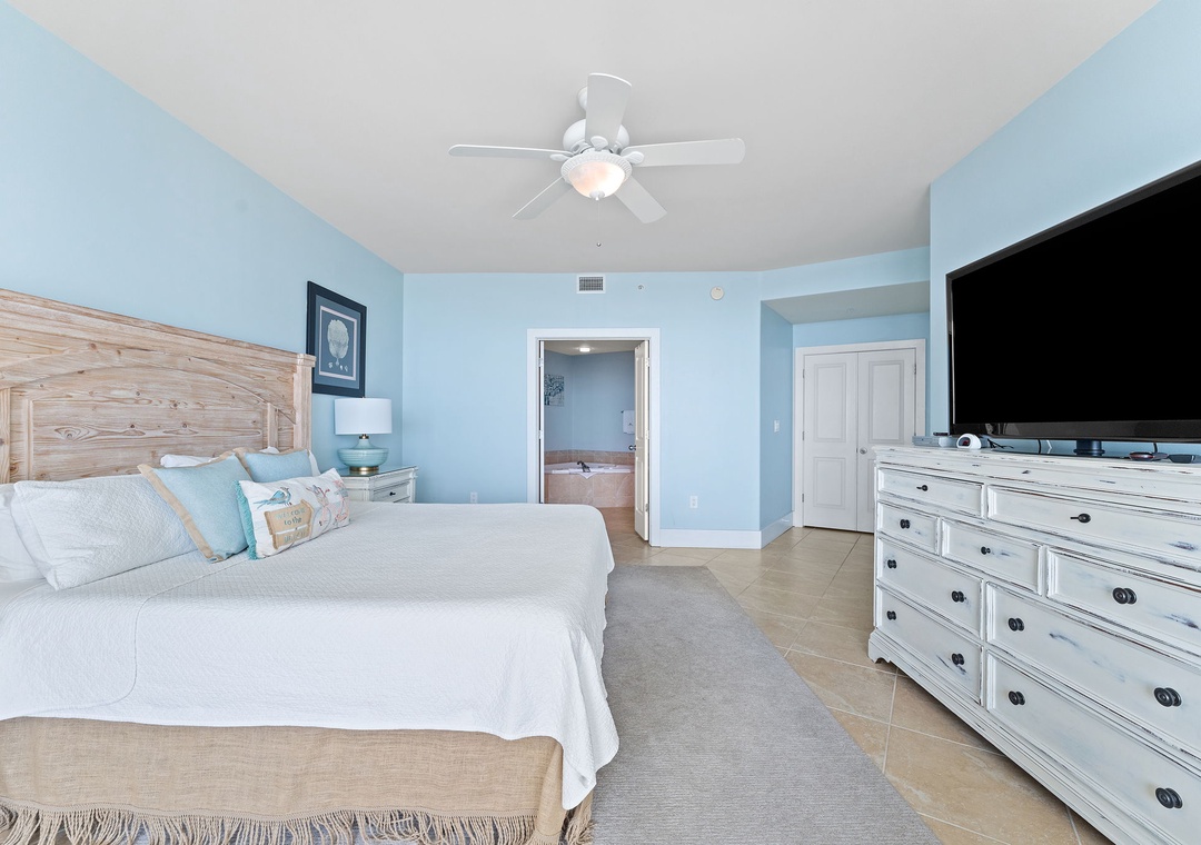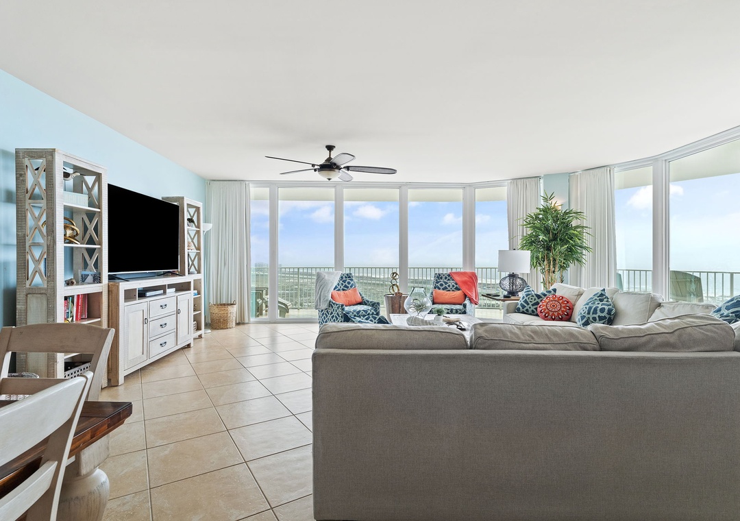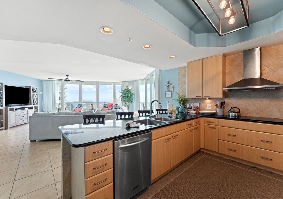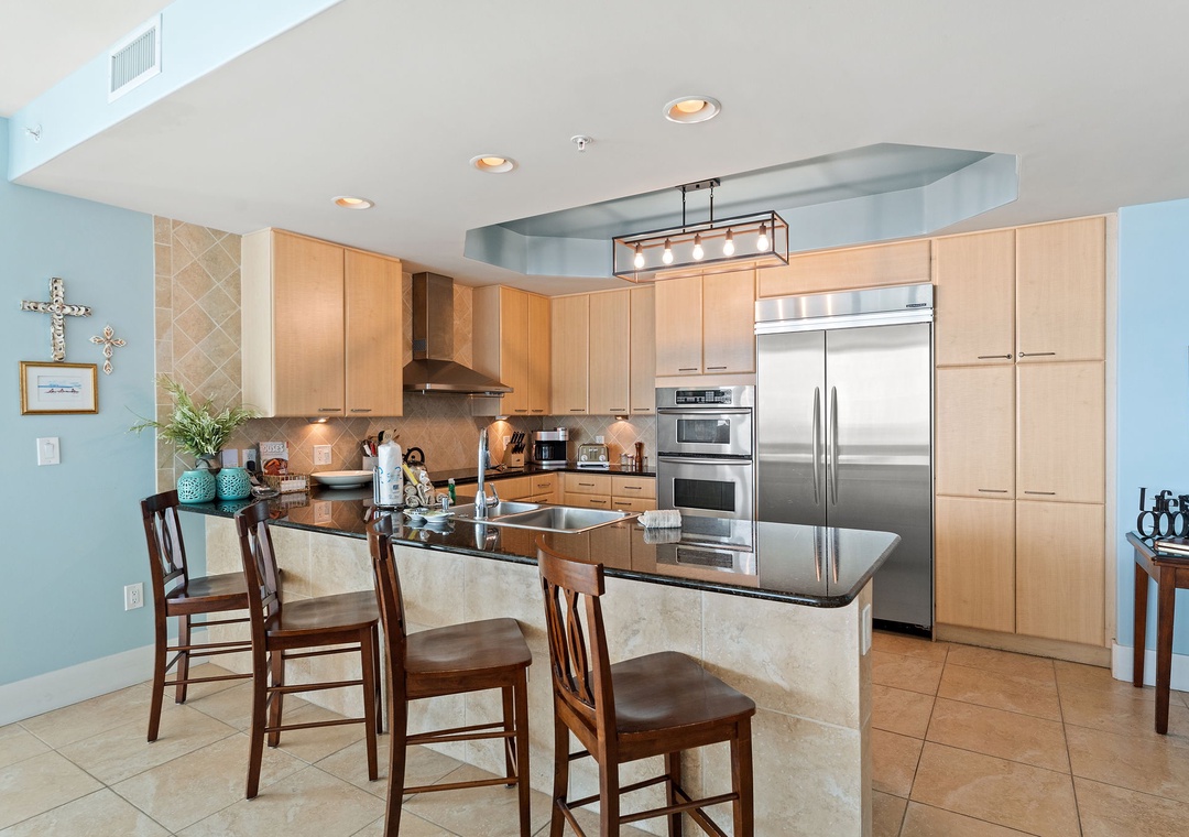With premium mattresses and luxury appointments in the bedrooms and baths, you'll definitely catch up on some much needed rest and relaxation during your vacation. The master bedroom offers a king size bed and balcony access, and the adjoining glamour bath includes a jetted 2 person tub, separate walk in shower, and twin vanities with vessel sinks. The 2nd and 3rd bedrooms each feature a premium king bed and a private bath and 2nd bedroom also has balcony access. The 4th bedroom offers 2 bunk beds that sleeps 5. The living room sofa can be converted into a queen sleeper, allowing comfortable sleeping accommodations for up to 13!