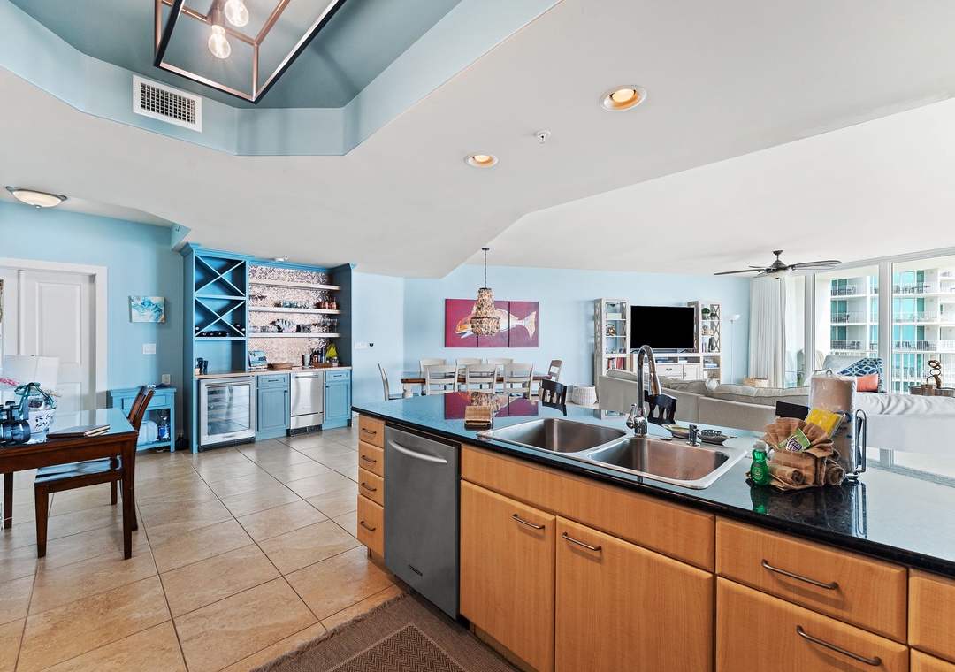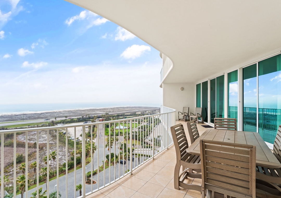 You'll never want to leave the beach once you stay in this beautifully furnished Caribe 4 bedroom, 3.5 bath luxury condo! This unit offers 2380 square feet of sophistication and comfort. The open concept layout gives a spacious and airy feel, with floor-to-ceiling windows creating the most amazing 360 degree views of the gulf from every angle. The wrap-around balcony that faces the gulf offers plenty of seating and space. The gourmet kitchen will impress even the most seasoned chef, offering professional-grade stainless appliances. The dining area features a wet bar with an ice maker, making entertaining a breeze!