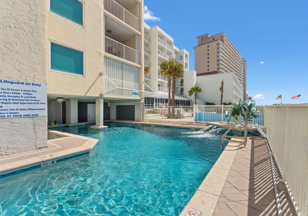 My family and I had a great stay! We had 9 people in our group and everyone had plenty of space. The view from the balcony was gorgeous. If you like to get up and watch the sunrise it’s worth it, we were able to see dolphins from the balcony! We loved that there were restaurants within walking distance. There was a covered area by the pool that was a nice bonus that when there was a couple pop up showers we could still hangout and play cards.- Reviewed On: 7/18/2025