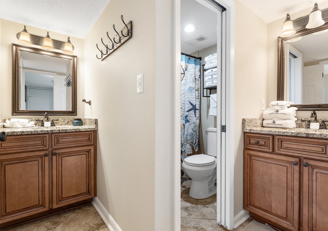 * TWO updated shared granite vanities