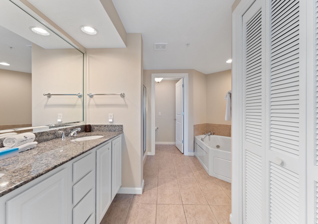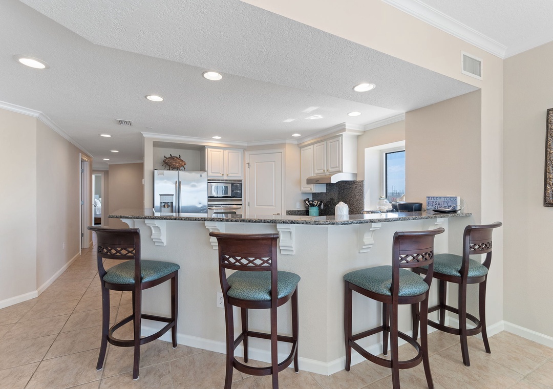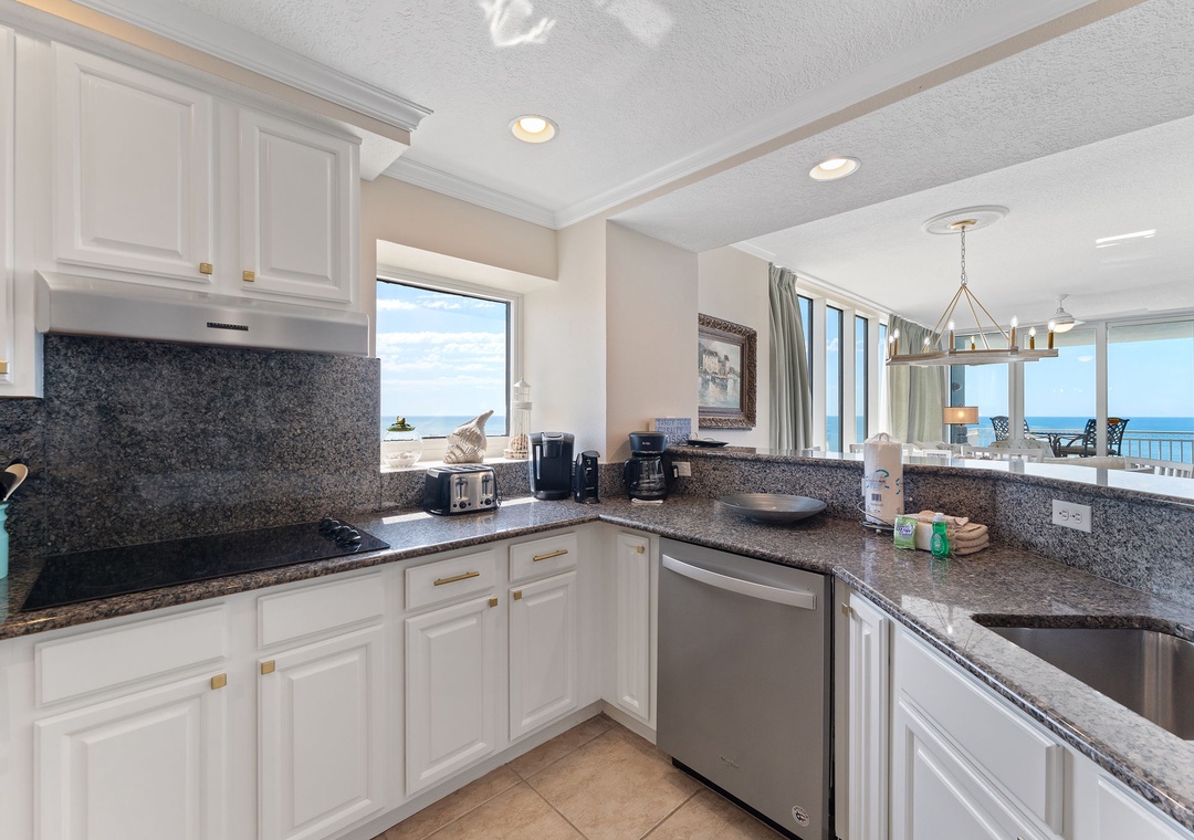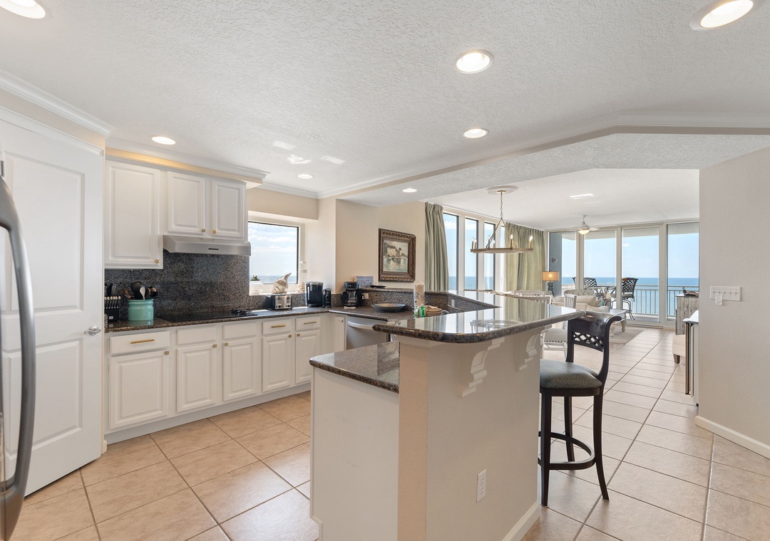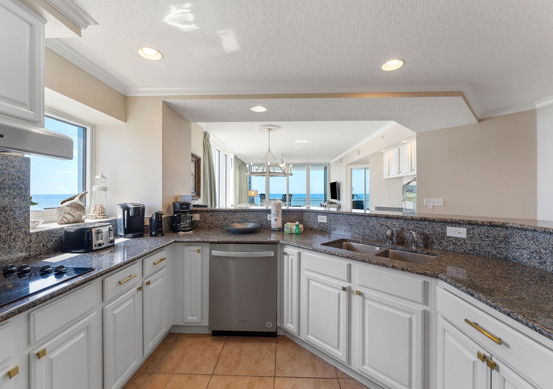 Indulge in some overdue and much needed rest and relaxation in the master suite, hosting a king bed with a premium mattress set, and beachfront balcony access! The attached master bath is equally inspiring, and you’ll definitely feel pampered when taking a bubble bath in the jetted garden tub, with a separate walk in shower! The second and third bedrooms feature a beautiful king bed, and the 4th bedrooms offers a queen beds! There is a full-size washer and dryer included in this unit.