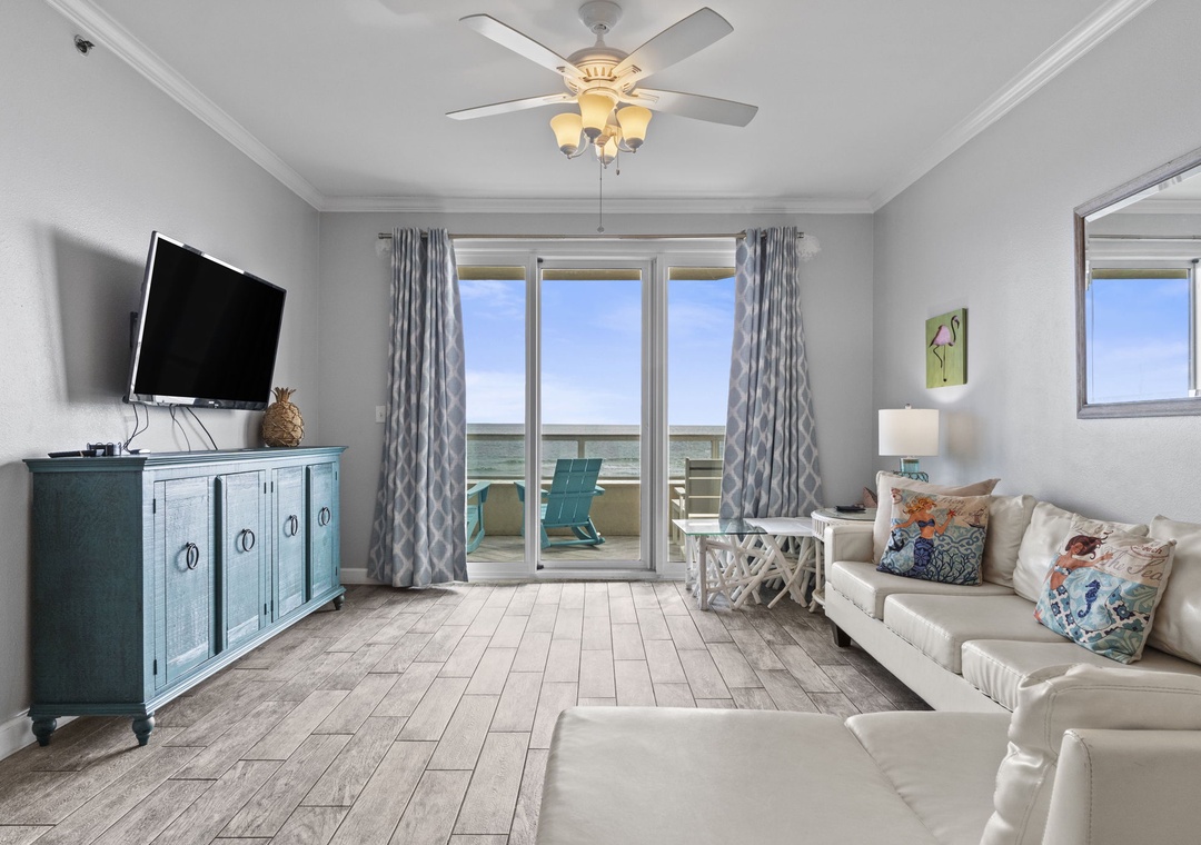 The open kitchen, living, and dining area invites you to relax and entertain with ease. Enjoy the convenience of a wet bar and step out onto the private fourth-floor balcony to soak in stunning beachfront views. The Enclave complex enhances your stay with a beachfront community pool, direct beach access, an indoor pool, tennis courts, and a charcoal grilling area for outdoor dining. Experience the ultimate beach vacation at Enclave 404!