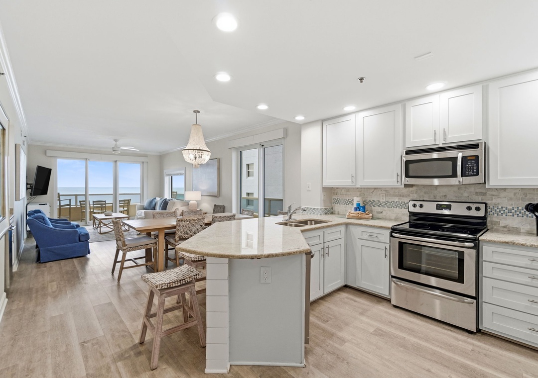 Discover one of the Gulf Coast's most beautiful beaches and vacation in style when you stay with us at the Enclave in sunny Orange Beach, Alabama! This lovely 3-bedroom unit features a spacious open-concept layout, updated electronics and beautiful decor throughout! Lounge with the family for movie night in the living area, complete with comfortable furnishings, a large flat screen TV, and beachfront balcony access! The sliding glass doors open to your covered terrace, where you can sit and enjoy the beauty and splendor of the Gulf of Mexico without leaving the comfort of your beachfront abode. The gourmet kitchen offers everything needed to inspire your inner-chef with upgraded appliances, utensils and cookware needed to prepare a culinary masterpiece! The dining area offers seating for the whole family, with additional seating at the breakfast bar.