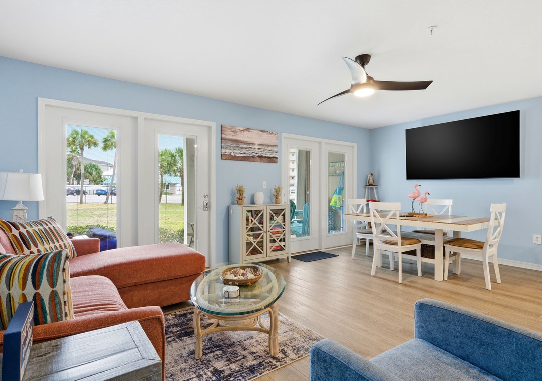 Our beautiful ground floor unit is a one-minute walk to the beach, "that's one minute to toes in the sand". Let this be you and your family's experience year after year. The owners put extra attention into the design of the spa like bathrooms with walk-in tile showers, new vanities and accents. The kitchen has been upgraded with new cabinets and backsplash. The living room has new furniture including a new sleeper/sectional and larger TV then it is top off with a new kitchen table. The condo also is equipped with access to beach supplies and improved accommodations to the back porch.