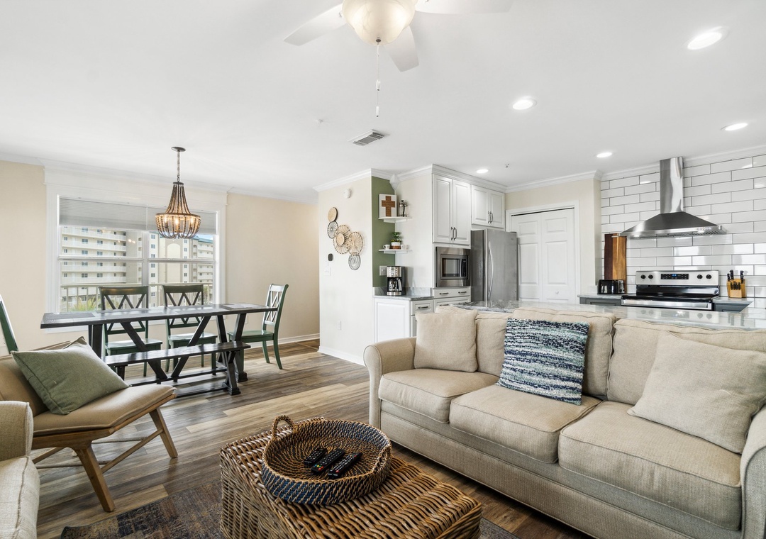 Thank you, Robert, for your 5-star rating. We're pleased you enjoyed the great location and found the condo, especially the kitchen, impressively decorated and organized. We look forward to your next visit. ~Sunny Regards, Angel, Luxury Coastal VacationsLuxury Coastal Vacations staff