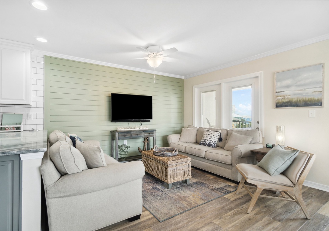 The condo was so beautiful & perfect for the 1st beach vacation for our family of four w/two young children. The new furnishings & decor were fresh, clean & comfortable (especially the beds!). We visited the local nearby seafood market & cooking at home was easy in the fully stocked kitchen. The location was quiet & relaxing & it was super easy walk down to the beach or return quickly to the condo when a child needed something. My husband appreciated drinking coffee on the large wrap around porch & it was also the perfect place to easily store our beach cart & gear at the end of the day. The kids loved warming up in the hot tub if they were cold from the ocean & the pool was a quieter option for them too (the building staff did a great job cleaning the pool & grounds early every morning). The beach for the building is at the quieter, uncrowded end of the stretch of beach before Johnson Beach state park & the sand was white & clean & the water enjoyable. Highly recommend!- Posted: 10/12/2024