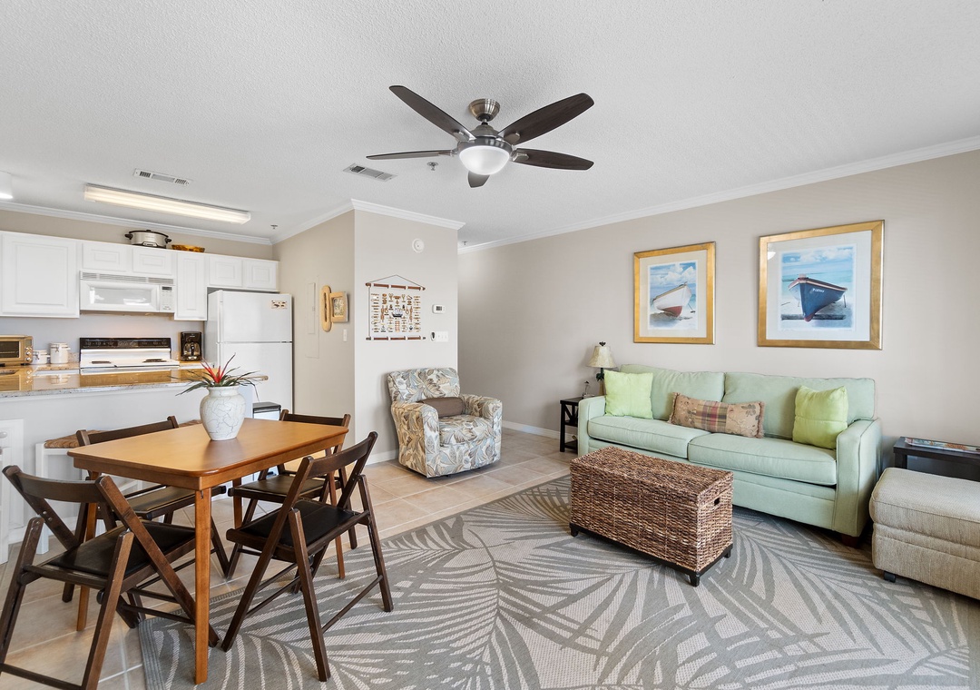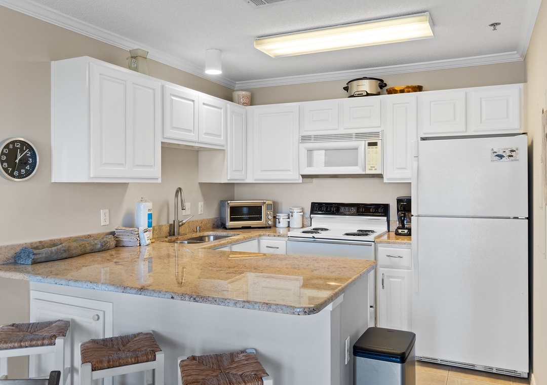 The full size kitchen features large and small appliances plus all the cookware, dishware, and utensils needed to prepare a culinary masterpiece. Eat breakfast at the bar right off the kitchen and enjoy your supper from the dining table which seats 4.