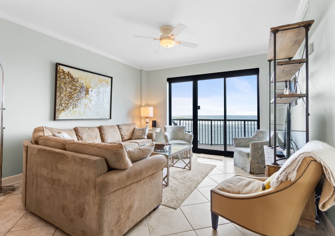 This spacious Gulf-front retreat is both cozy and elegant, featuring comfortable furnishings, stylish decor, and modern upgrades throughout. The living room offers ample seating for the whole family, with sliding glass doors leading to a large, covered balcony with breathtaking waterfront views. The gourmet kitchen is fully equipped with upgraded appliances, granite countertops, and all the tools needed to prepare delicious meals. After a day of fun, retreat to one of three luxurious bedrooms, including a king-size bed in the master and second bedroom, as well as a queen in the third bedroom, all offering premium linens for ultimate relaxation.