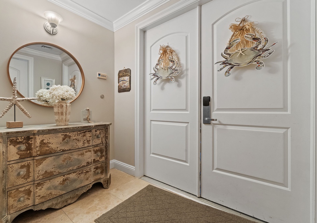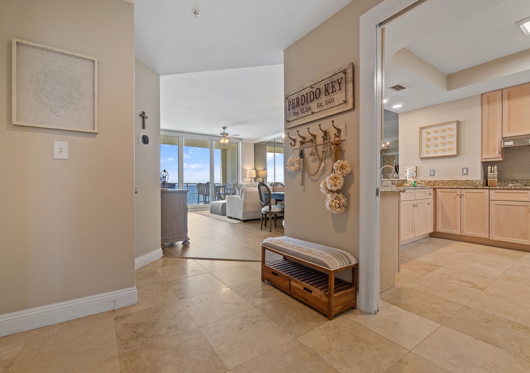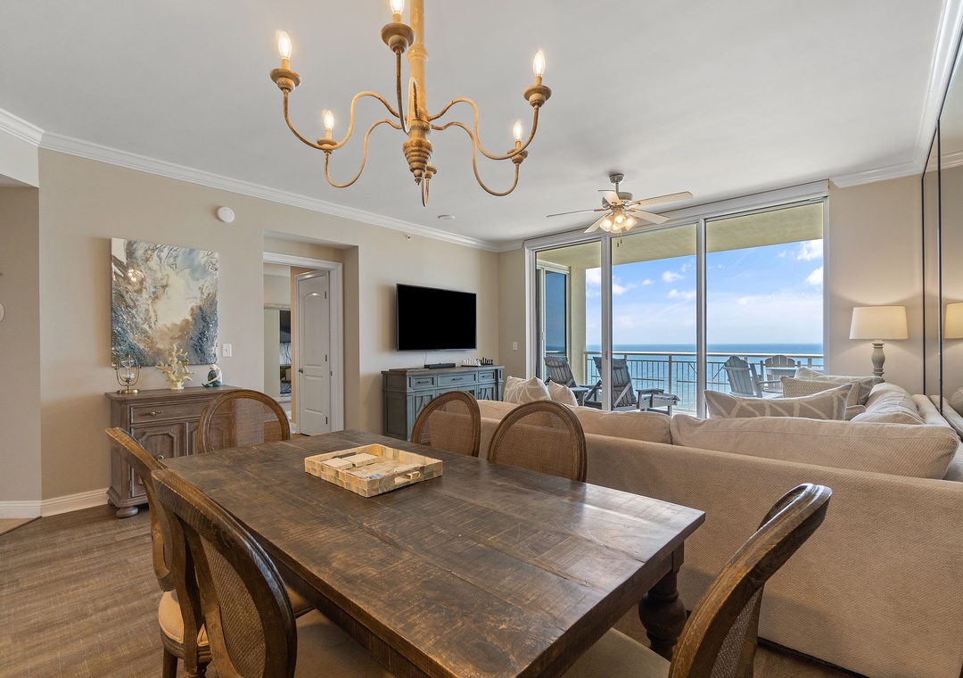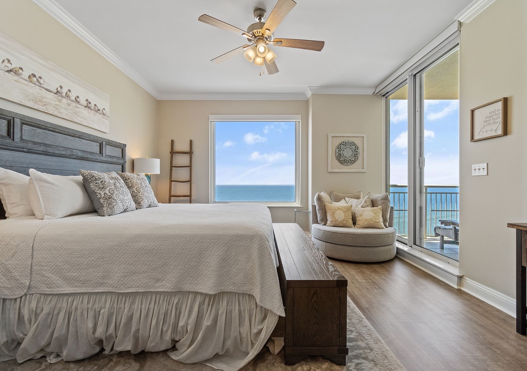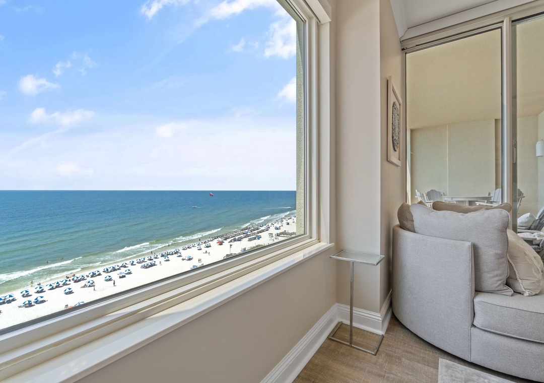 Experience an unforgettable vacation at our beautifully decorated 2-bedroom beachfront condo on the 10th floor of the Indigo Resort in Perdido Key, Florida. Enjoy breathtaking views of the Gulf of Mexico from the spacious living room, master bedroom, and gulf-front balcony. This thoughtfully designed retreat comfortably accommodates up to 6 guests, featuring a fully equipped kitchen with stainless steel appliances, a cozy living area with a sectional sofa and flat-screen TV, and a dining area for 6. Both bedrooms have private bathrooms, with the master offering a king-size bed, balcony access, and a luxurious walk-in shower. A den with a queen sleeper sofa and Retro Arcade Game Console adds extra entertainment.