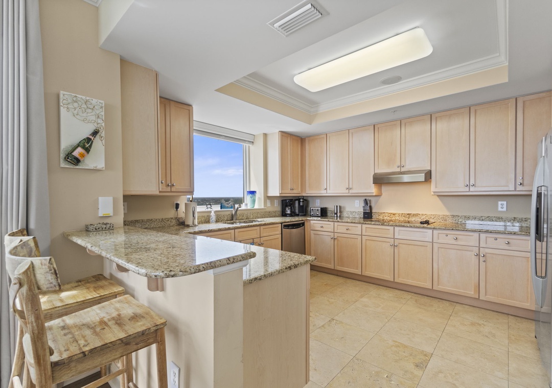 We have been coming to this area for 15 years. This was hands down the cleanest, most beautiful condo we have rented! The location was great. The pool was great. The view was amazing. I loved all the windows, the spacious kitchen and large family table. I am very picky about a well stocked kitchen and this one got an A+. The parking was not an issue. We always found a spot. Plenty of loading carts and bags of ice for sale on property. Grills were available and they use charcoal. We only had two minor complaints. One was the base around the bed in the back bedroom. It was difficult to get in and out of bed without hitting your foot! Also, the balconies seemed a bit small for a large group. Overall it was excellent and we will rent here each year we come!- Reviewed On: 6/29/2023