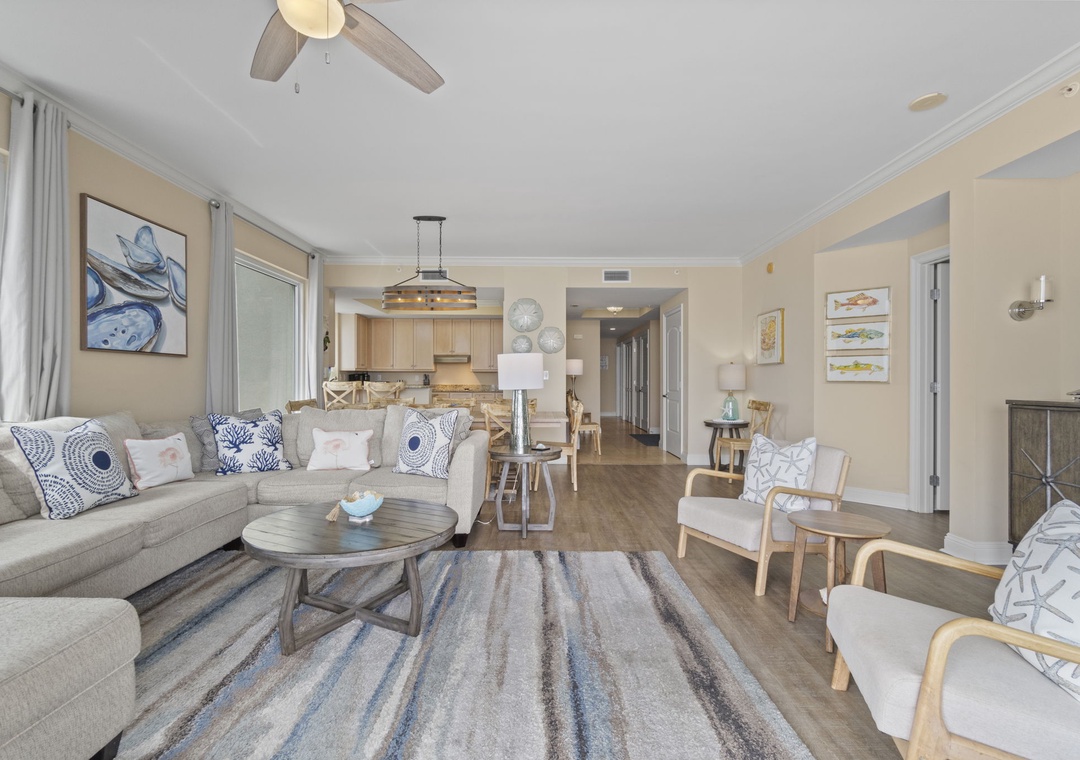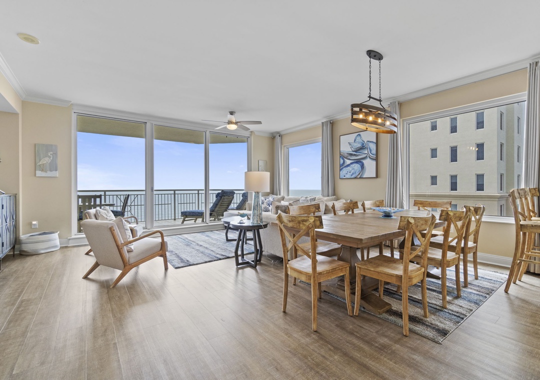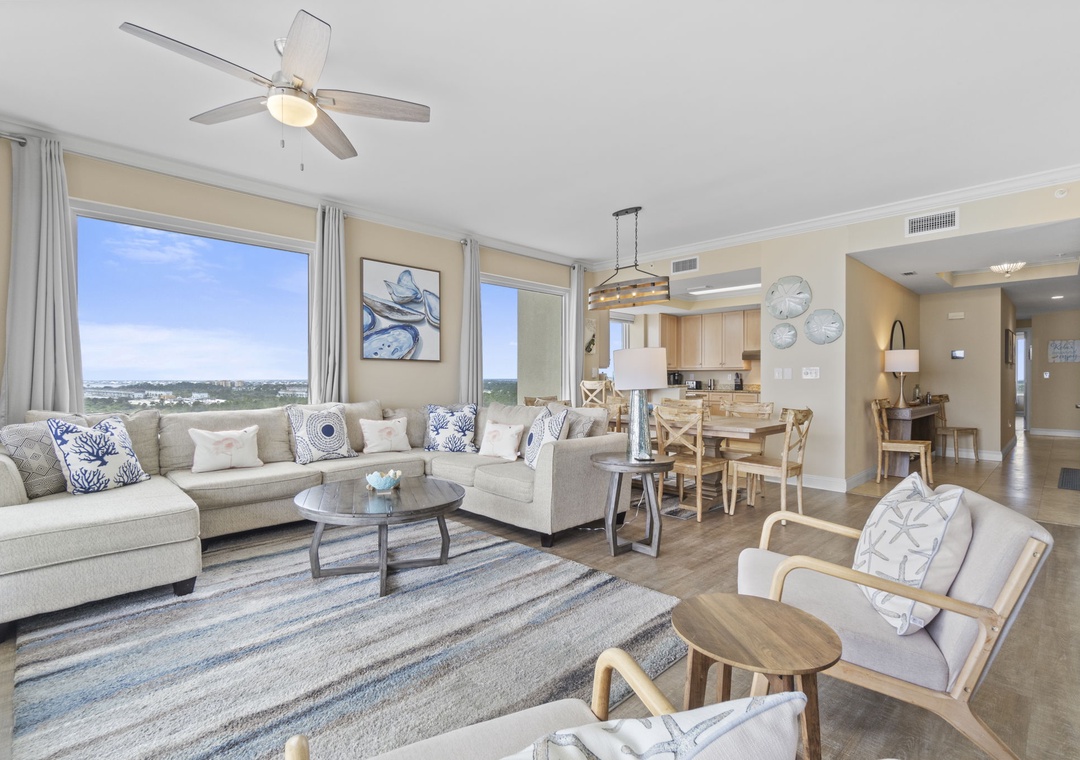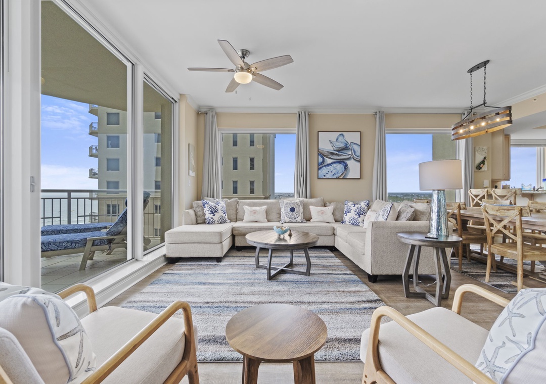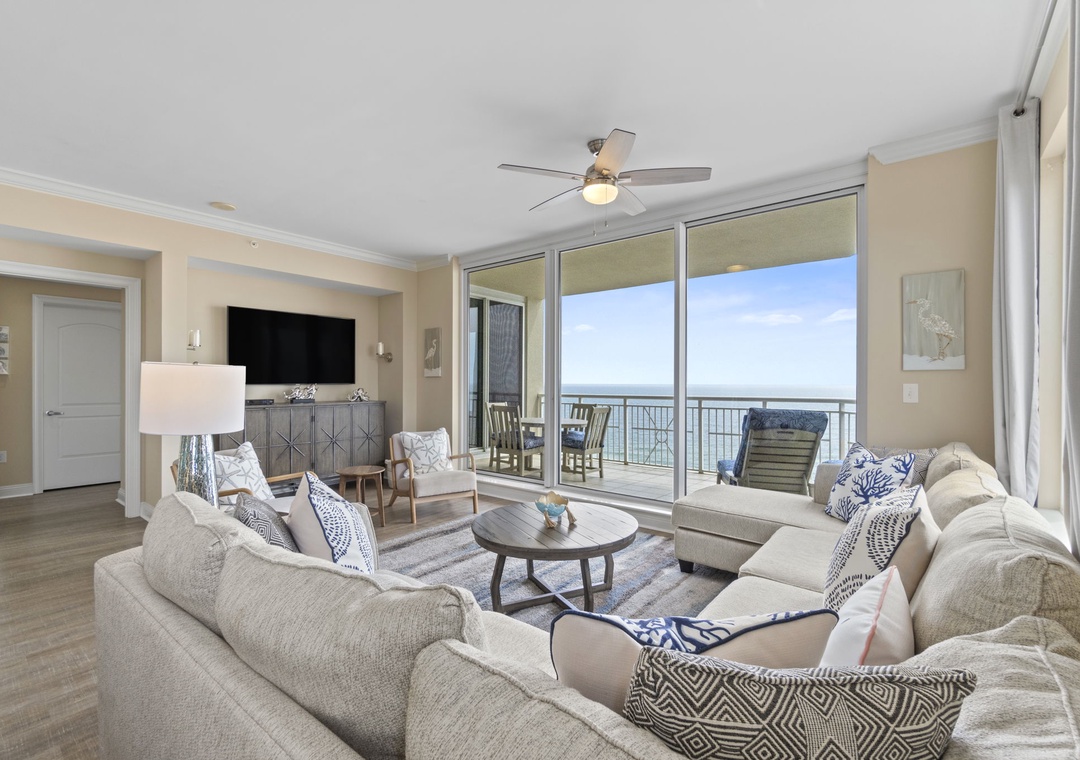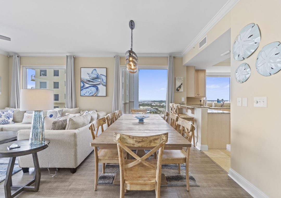Enhance your vacation experience by staying in this newly renovated, 10th-floor, 4-bedroom, 4-bath corner unit at Indigo. Boasting over 2,300 square feet of luxury, this exclusive condo offers breathtaking views from its oversized balcony, where you can lounge on a chaise or dine al fresco at a table for four. The stylish interior blends sophisticated, modern beach-inspired décor with an open floor plan and expansive windows that showcase stunning vistas from the north, south, and west.
