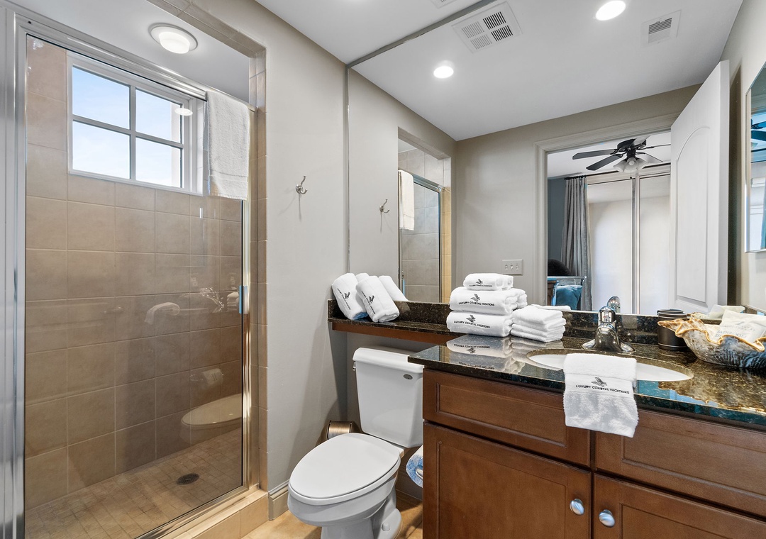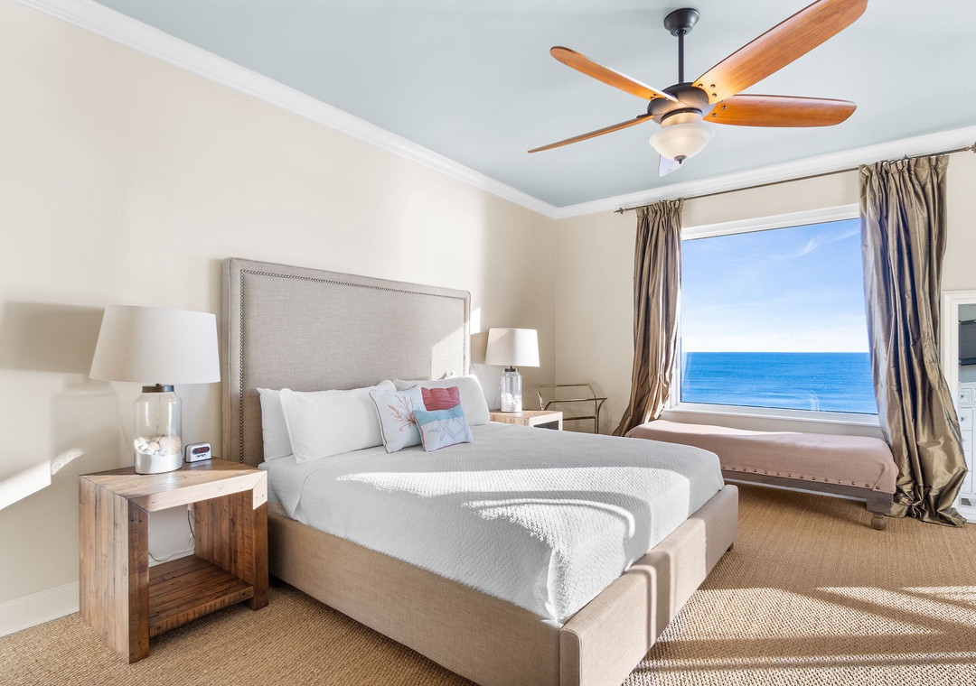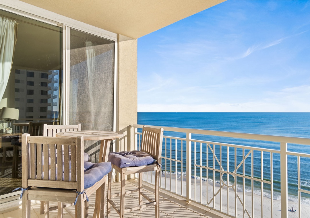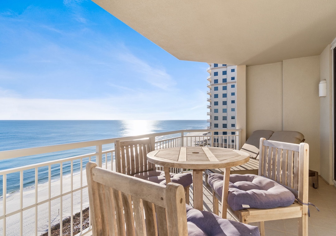 Wake up to stunning Gulf views from the primary bedroom, which opens directly to a furnished balcony where you can enjoy coffee or wine while soaking in the tranquility of the beach scene. The primary suite features a king bed, a luxurious bath with a jetted tub, double vanity, and travertine floors. The second bedroom also includes a queen bed, while the third bedroom offers a queen bed and twin day bed, along with a private bathroom. Both guest rooms provide balcony access. Additional conveniences include an in-unit laundry room with a large washer and dryer, and easy access to a trash chute just outside your door.