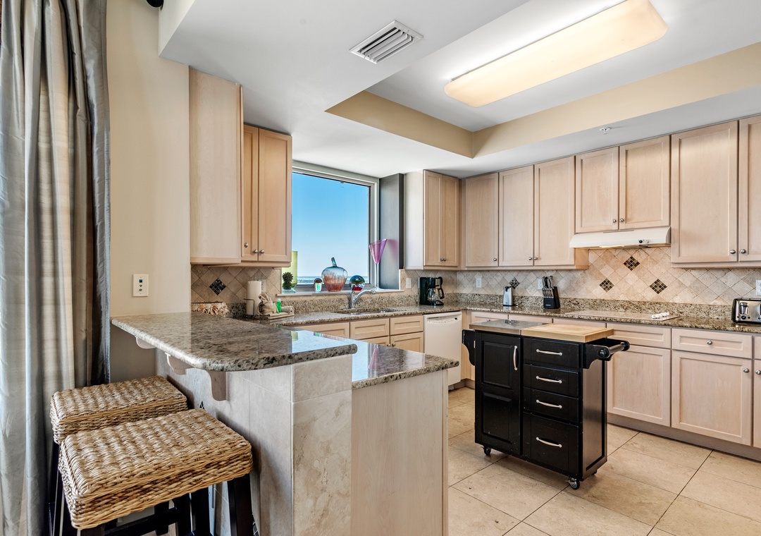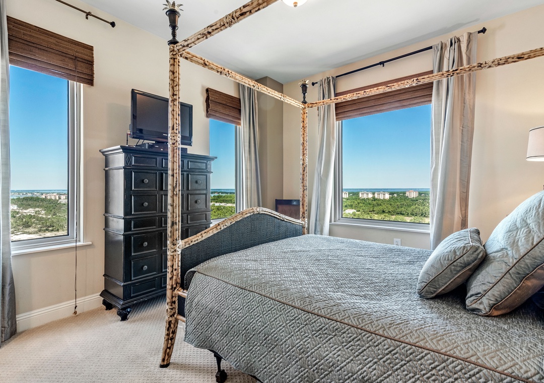 Experience the vacation of a lifetime in this luxurious 19th-floor, 4-bedroom, 4-bath corner unit at the renowned Indigo Resort in Perdido Key, Florida. Located in the East Tower, this beachfront retreat boasts newly updated designer furnishings, floor-to-ceiling windows, and a spacious open floor plan that offers stunning views of the Gulf. Relax on the private balcony or unwind in the stylish living area, complete with a queen sofa bed for additional sleeping options. The fully equipped kitchen features granite countertops, a glass top range, and ample prep space, perfect for preparing meals with locally sourced seafood.