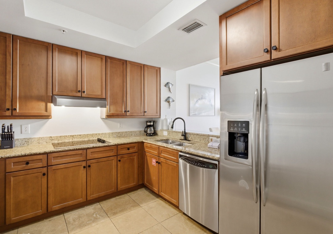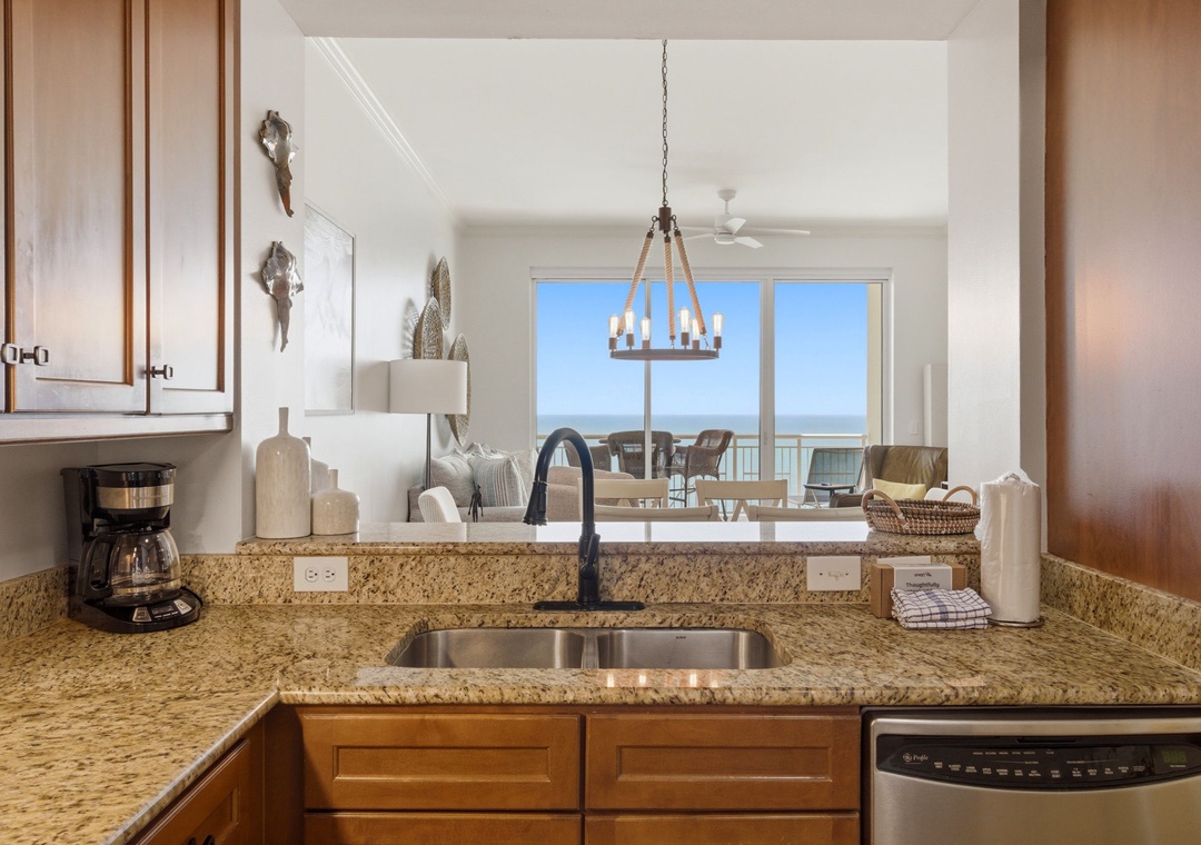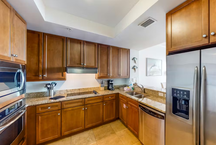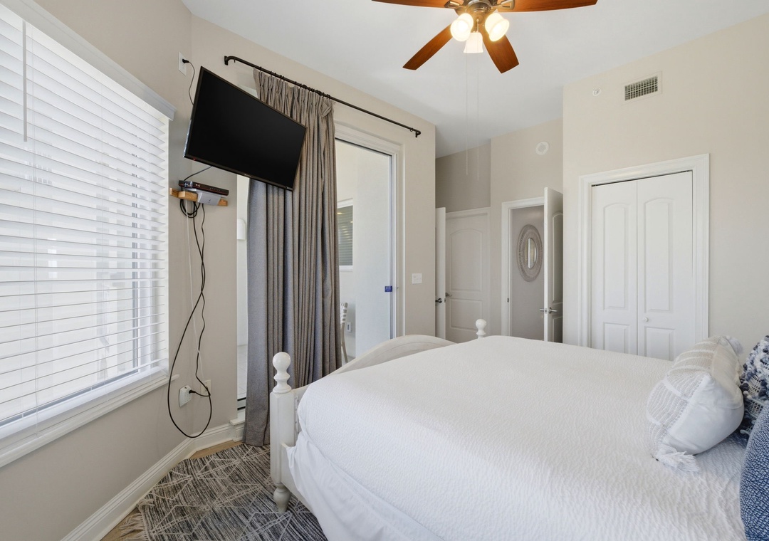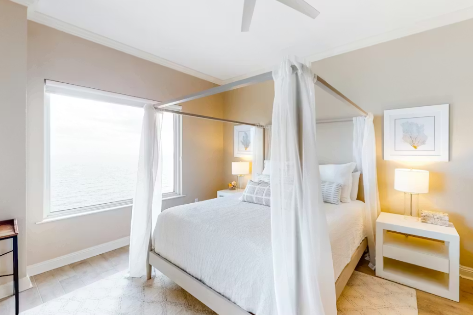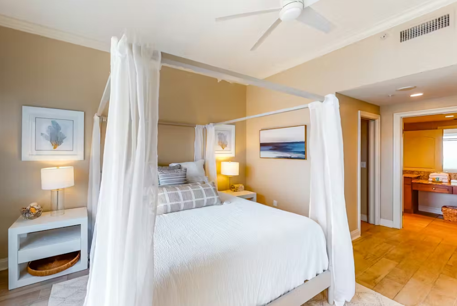 The luxury kitchen is fully equipped with upgraded stainless appliances and all of the cookware needed to craft a delicious meal. The dining table offers seating for 6, and there is additional seating at the breakfast bar. The Gulf-front master suite boasts hardwood floors, a premium king mattress, luxury linens, a flat-screen TV, and balcony access with incredible Gulf views. The master bath includes double vanities with granite countertops, and a glass walk-in shower. The second suite is equally impressive, with a king bed, luxury bedding, a flat-screen TV, and access to the north balcony with stunning views of Old River and the Intracoastal Waterway. Don't miss out on this perfect coastal getaway—book Indigo East 2003 today!