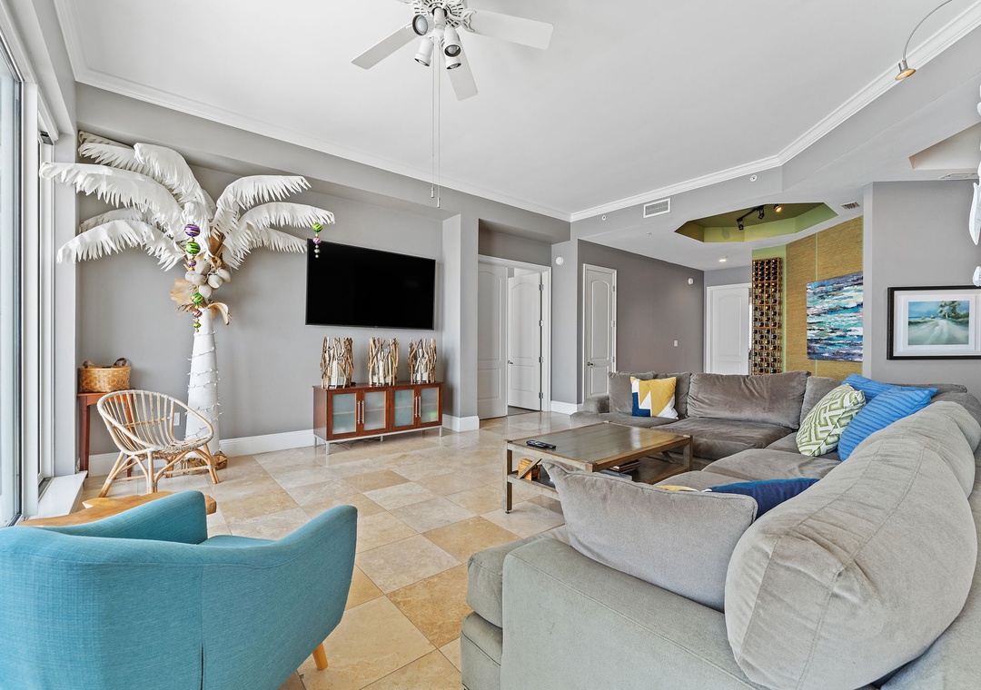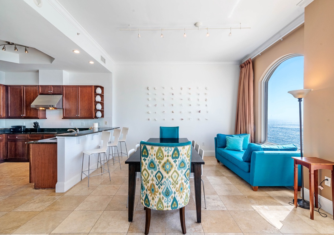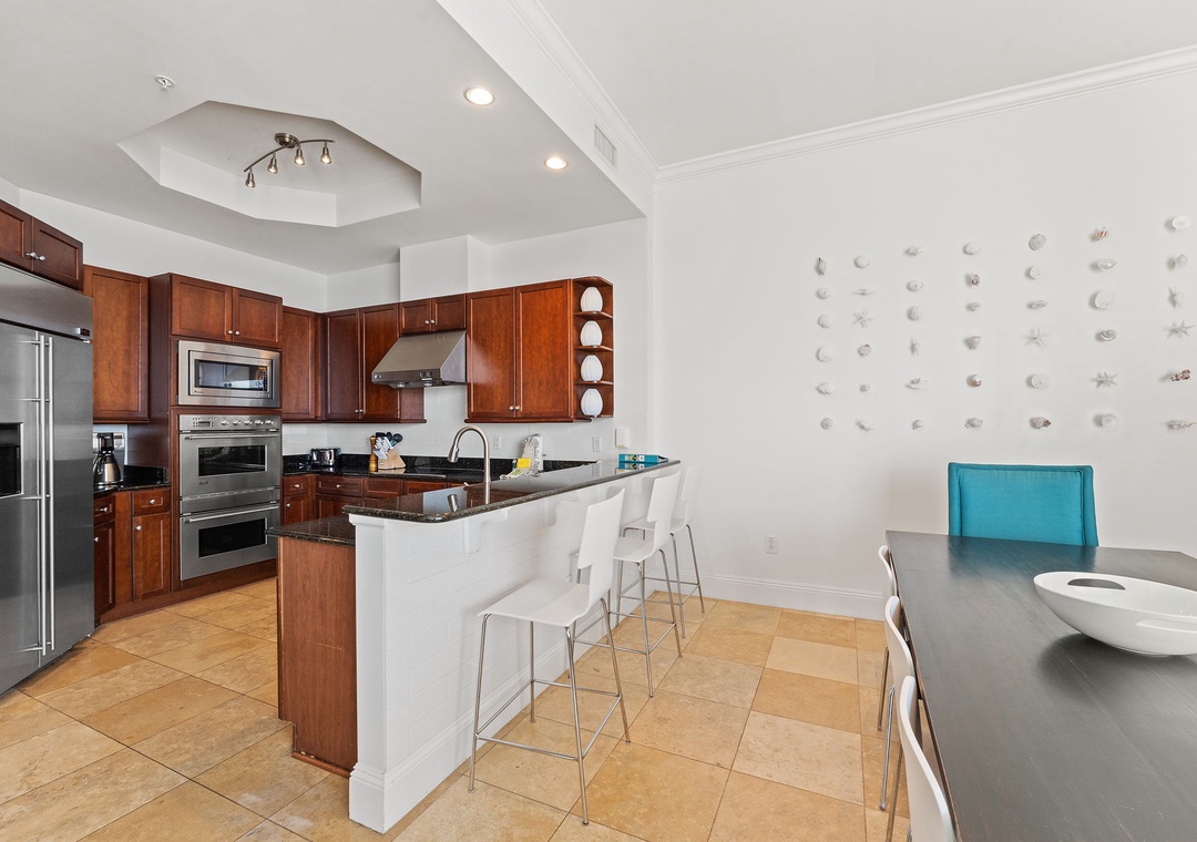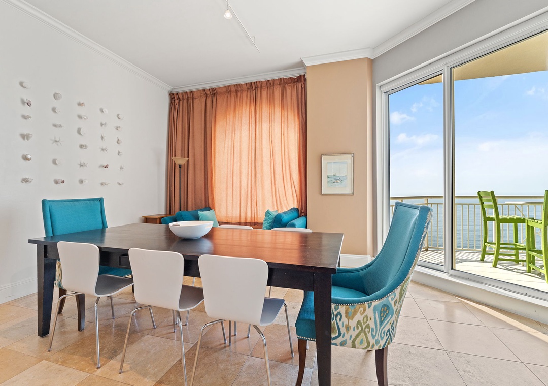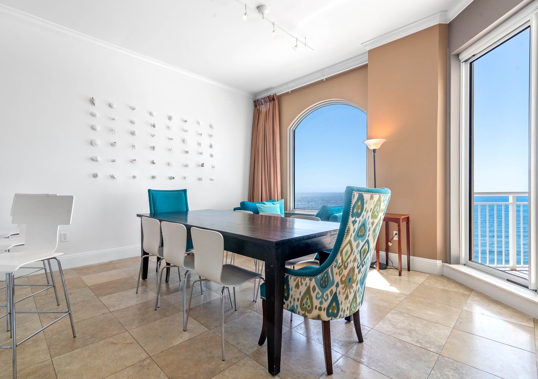 Indulge in the ultimate luxury getaway at Indigo Resort by staying in this exquisite 21st-floor, 3-bedroom, 3.5-bath penthouse. Situated along Perdido Key's pristine shores, this exclusive unit offers 2,800 square feet of modern elegance, with high ceilings, contemporary furnishings, and beach-inspired accents. Enjoy breathtaking views of the Gulf from the oversized lanai, where you can relax, dine al fresco, and watch dolphins play. The gourmet kitchen is a chef’s dream, featuring stainless steel GE Monogram appliances, granite countertops, custom cabinetry, and a wine chiller, while the spacious dining area comfortably seats eight, with additional seating at the breakfast bar.