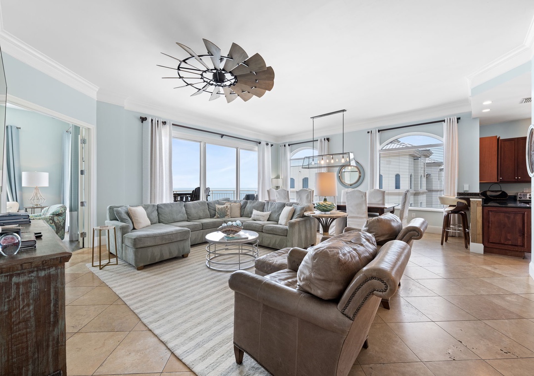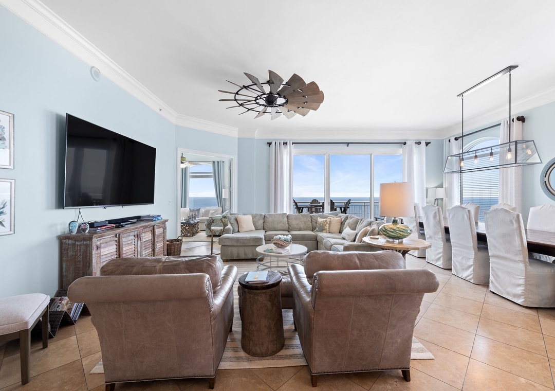 All 9 of us stayed very comfortably in this spacious, beautifully decorated penthouse unit! The layout of the unit was very well thought out and designed. Loved the furniture and decor but most of all the amazing panoramic views of the gorgeous Gulf! Quick and easy access to the pool and beach was perfect for our group with young kids! We had a fantastic stay and are already looking forward to our next trip down! Thank you for such a fun and relaxing vacation!