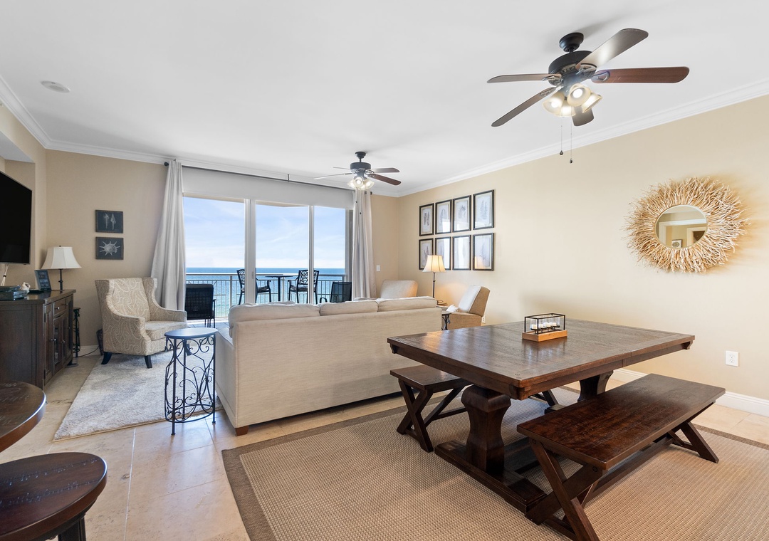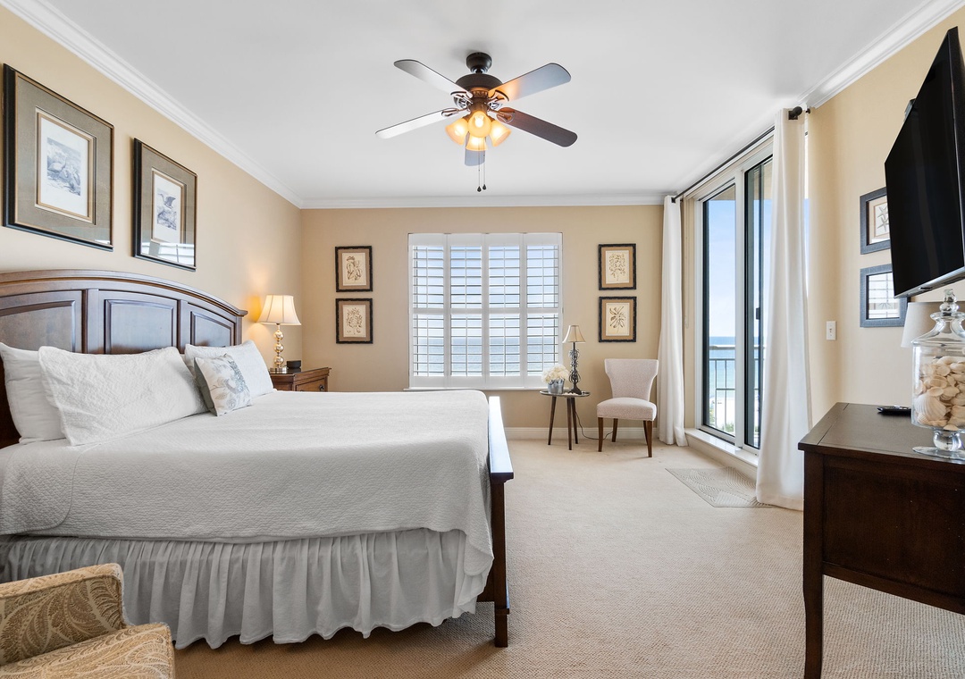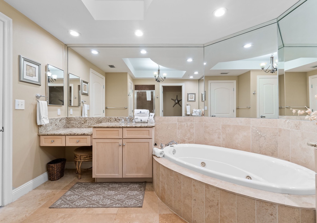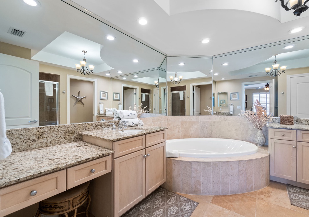 Elegantly decorated with a blend of old-world and contemporary styles, this spacious unit features a gourmet kitchen with stainless steel appliances, granite countertops, and everything you need to prepare a meal. The master suite boasts a king bed, beachfront balcony access, and a spa-like ensuite bath with a jetted garden tub and walk-in shower. The guest bedrooms also feature attached baths and balcony access, comfortably accommodating up to 8 guests. With in-unit laundry and luxurious resort amenities, this is the perfect getaway for your next beach retreat!