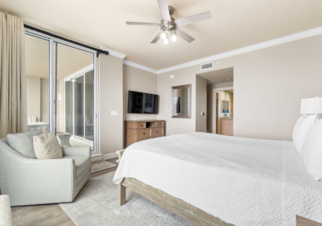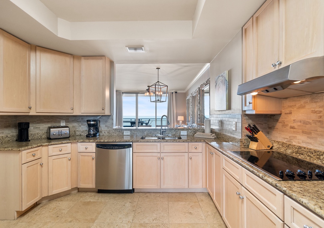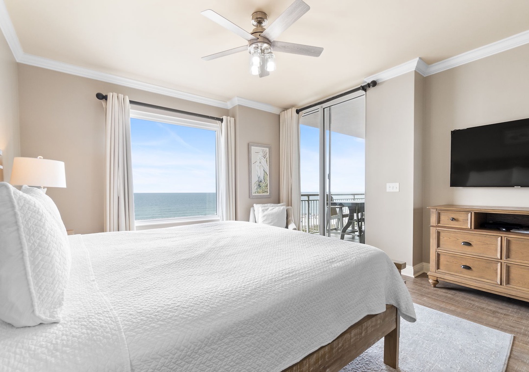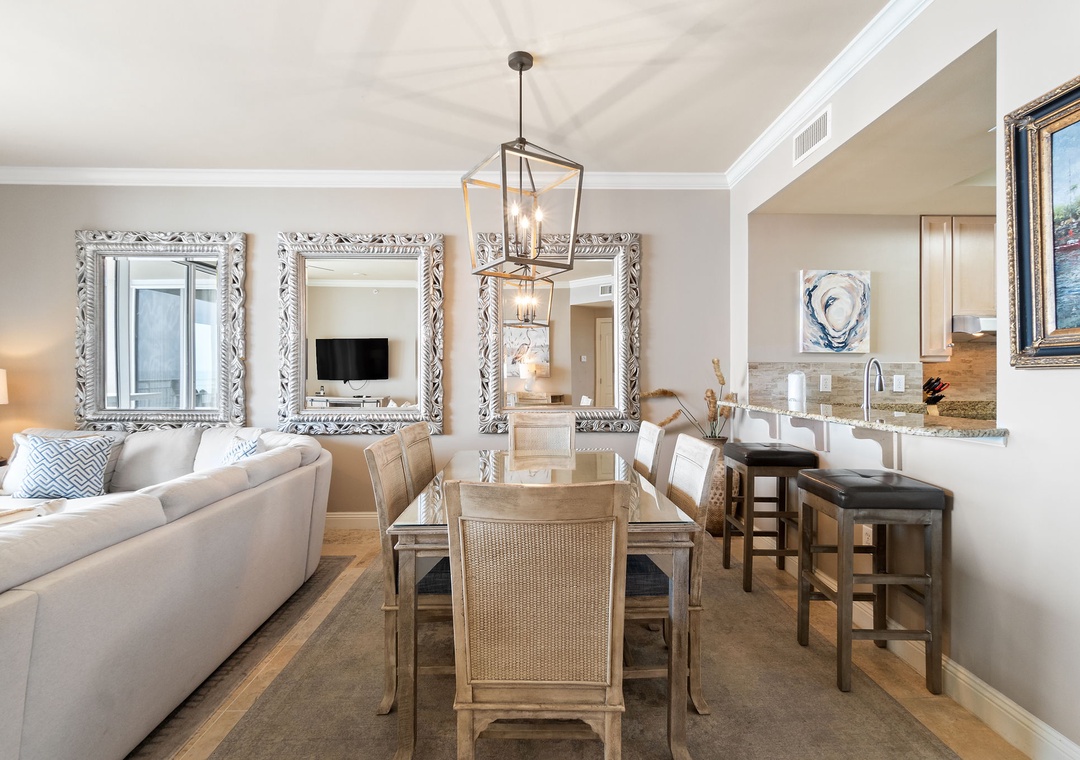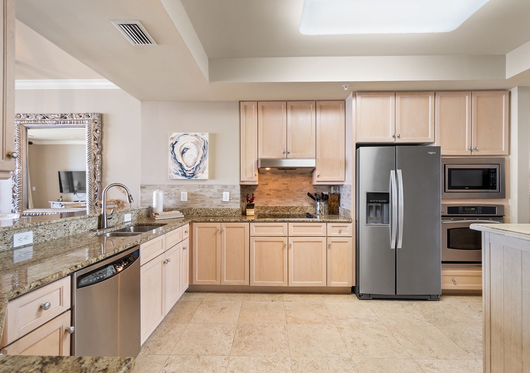 The gourmet kitchen is fully equipped with stainless steel appliances, granite countertops, and custom cabinetry, making meal prep a breeze. The master suite is a peaceful retreat with a king sleigh bed, premium linens, and beachfront balcony access, while the second bedroom also offers a king bed and north balcony views. The bonus den provides extra space and comfort, and the living room’s sleeper sofa allows the unit to accommodate up to 6 guests. With in-unit laundry and resort-style amenities, this Indigo condo ensures an unforgettable vacation experience.