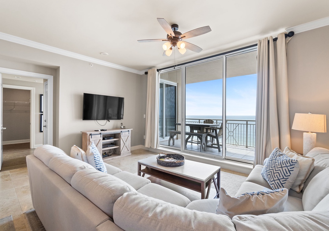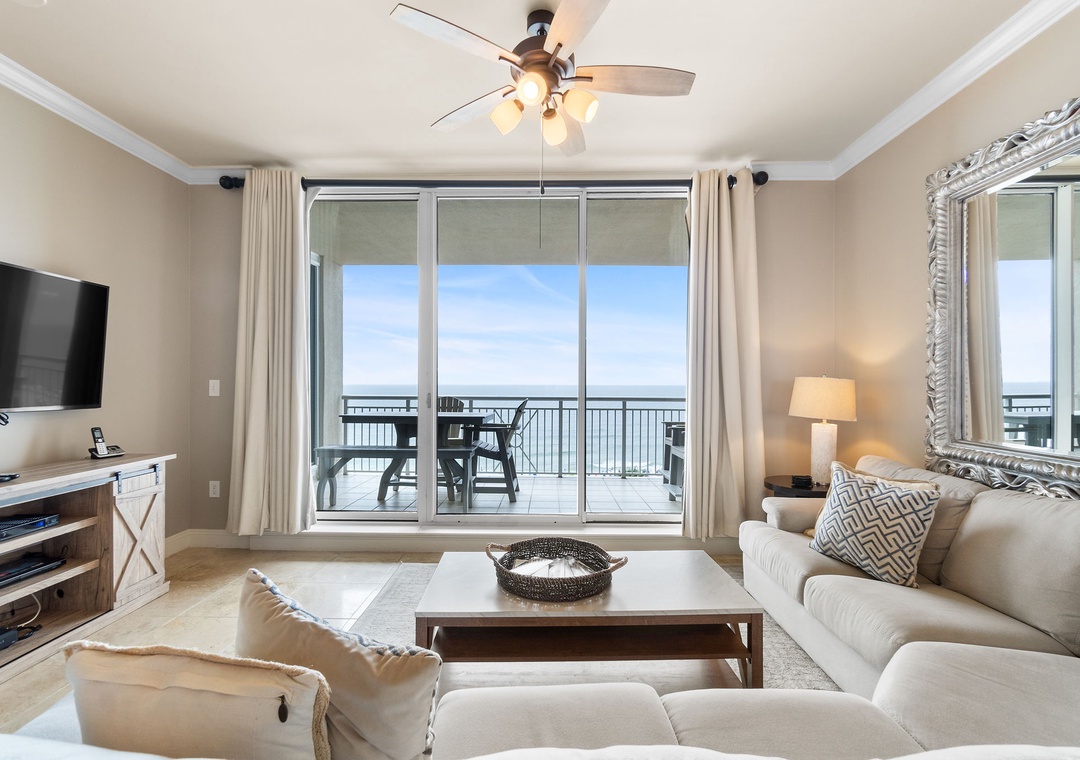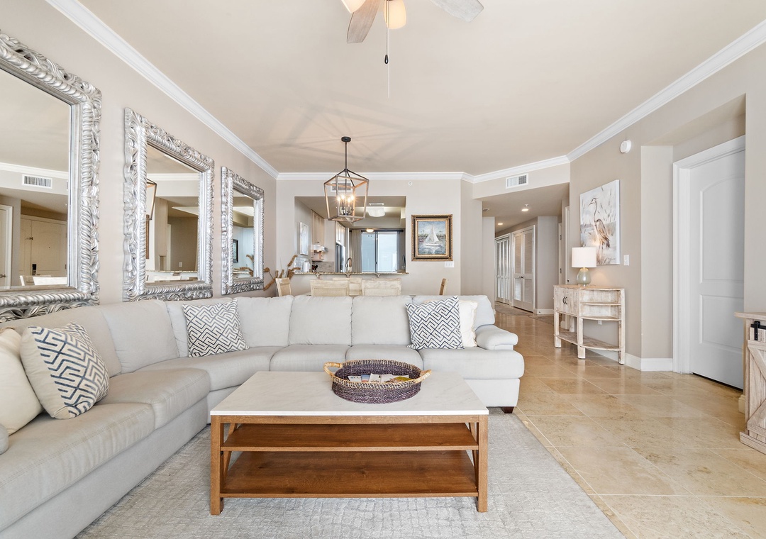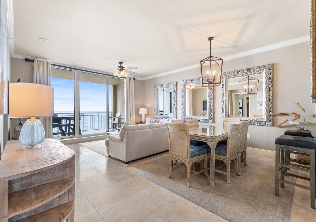 Experience luxury and comfort at this stunning 2-bedroom, 2-bath Indigo unit with a bonus den, located on Perdido Key's most pristine stretch of coastline. This 6th-floor condo offers breathtaking views of the Gulf of Mexico, Old River, and the Intracoastal Waterway, with expansive sliding glass doors that bring the beach right inside. The oversized gulf-front lanai is perfect for relaxing with morning coffee or evening cocktails, offering the tranquility of the waves and coastal breeze. With over 1,600 square feet of space, this bright and open unit provides the perfect setting for a luxurious getaway.