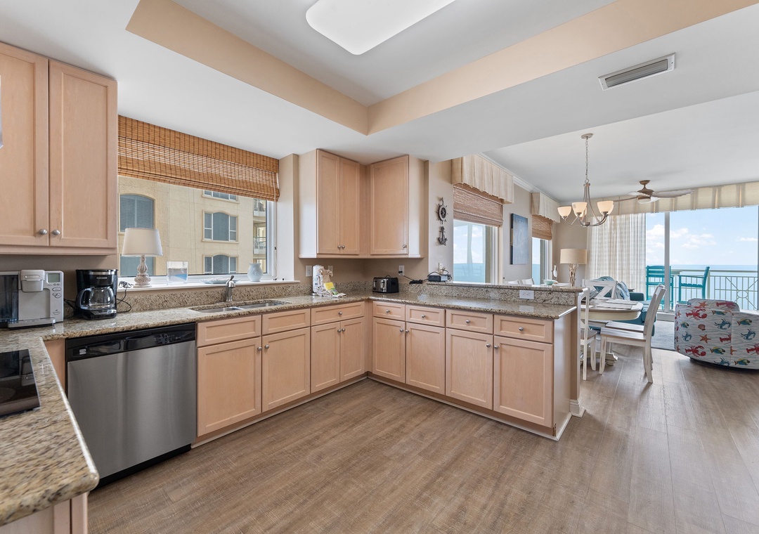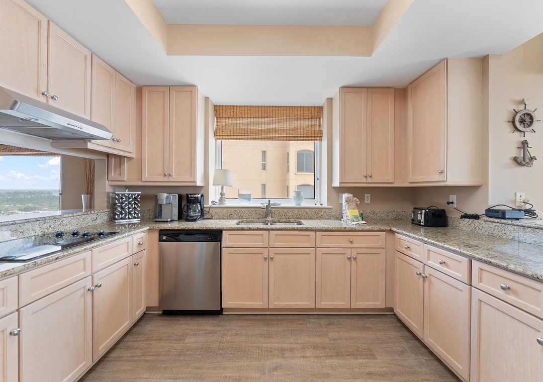 We loved staying in East 901 and plan to return. Overall, it was extremely comfortable and pleasant. It was perfect for our family. The elevator coming straight to the foyer was terrific. The view was spectacular. The beds were very comfortable. The TVs were great. The split bedroom arrangement was wonderful. The bathrooms were very nice and the linens were super nice also. The condo was lovely and spacious. The pool is fabulous and the walk to the beach is short. The kitchen is nice, however, there was no dish with a lid to use in the microwave. I will bring a few things to use in the kitchen when we return. The faucet in the kitchen needs to be replaced. It was leaking and was hard to turn off. We called maintenance and they tried to repair it, but it didn't last very long. The lock to the balcony doesn't lock, but that didn't really matter since we were on the 9th floor. Other than those 2 things, everything was wonderful and far outweighed those minor things. As I said, we loved our stay and will definitely return.- Reviewed On: 8/21/2018