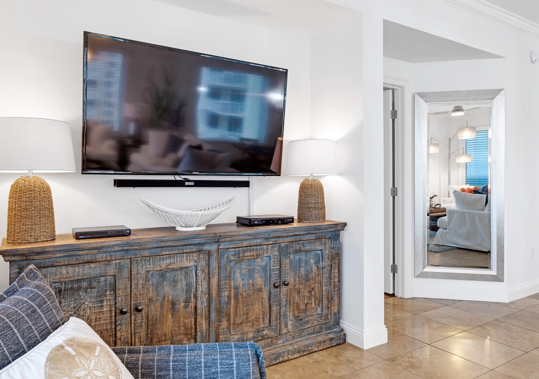 My wife and I have visited many other beaches and have stayed in a mix of houses and condos on the beach. This by far was not only the nicest property we have stayed in, but felt more relaxed than we have anyplace before. The pictures on the website do not do it justice. Our expectations were greatly exceeded once we entered the property. As soon as you walk into the living room there are floor to ceiling windows with a breathtaking view. This condo has everything you'd want in a rental. Very spacious, comfortable, and relaxing. The owner has put a lot of time and attention into the details of the property. From the furnishings, to the pictures on the walls, they left no stone unturned. As far as amenities, they are all there. From the large accommodating pool, hot tub, tennis courts- there's always something to do. Also , if you want to take your family to the "movies", they have a theater right there on property for no cost. All in all, from the seamless ck in , the gorgeous condo, and the amenities that were provided we will definitely be back! Can't wait til next year!- Reviewed On: 4/5/2015