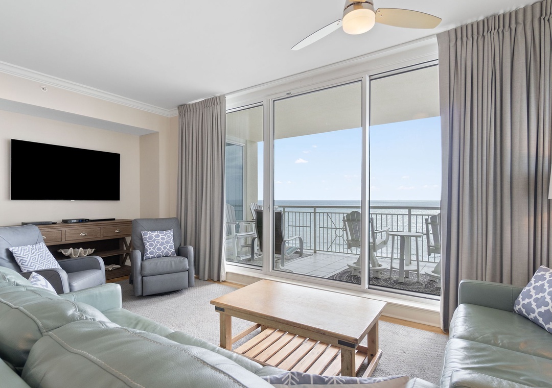 Experience your dream vacation in this thoughtfully decorated 4-bedroom, 4-bath corner unit at Indigo West. Located on a pristine stretch of the Gulf Coast, this luxurious 11th-floor retreat offers breathtaking, unobstructed views of the sugar-white sands and emerald waters. The open-concept living area is both elegant and comfortable, with plenty of seating, a large flat-screen TV, and floor-to-ceiling glass doors leading to a beachfront balcony. Whether you're enjoying morning coffee, reading a book, or having a sunset dinner, the spacious Gulf-front terrace is the perfect spot to soak in the beauty of the coast.