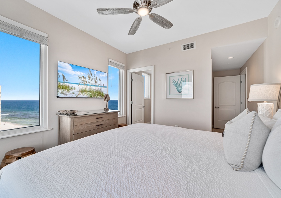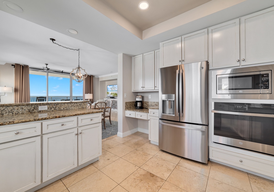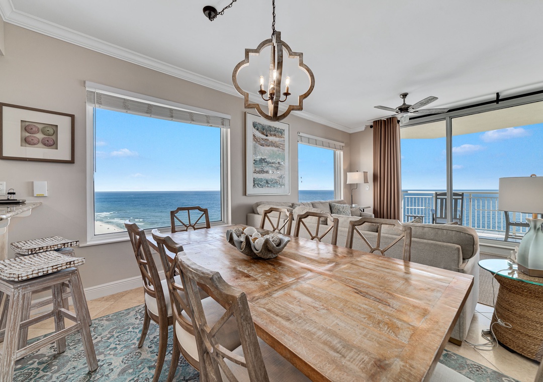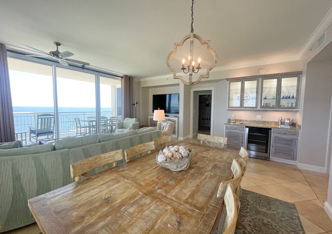 Escape to the pristine shores of Perdido Key and enjoy a dream vacation at this stunning 17th-floor, 4-bedroom, 4-bath condo in the west tower of the luxurious Indigo Resort. Nestled on Perdido Key’s east end, Indigo offers the perfect mix of serene island vibes and nearby entertainment. The gourmet kitchen is equipped with granite countertops, custom cabinetry, and all-new stainless steel GE Profile appliances, including a French door fridge with ice dispenser. Whether you’re enjoying breakfast at the kitchen bar or dinner at the spacious dining table for six, you’ll be treated to spectacular views of the Gulf as the sky transitions from blue to sunset hues.