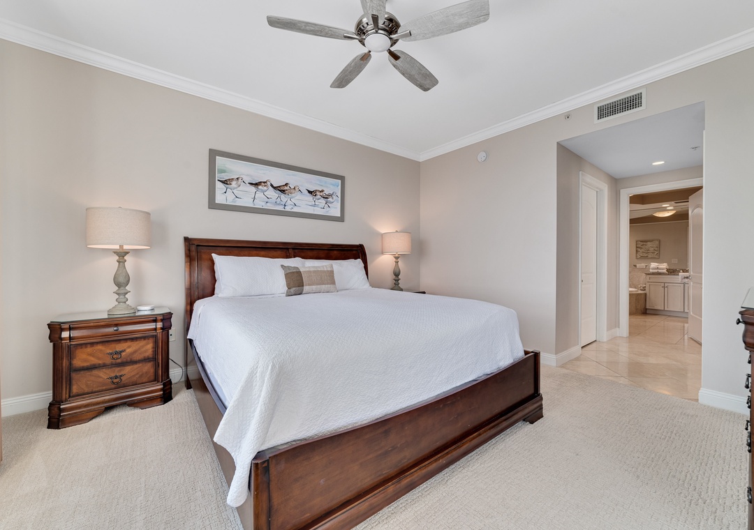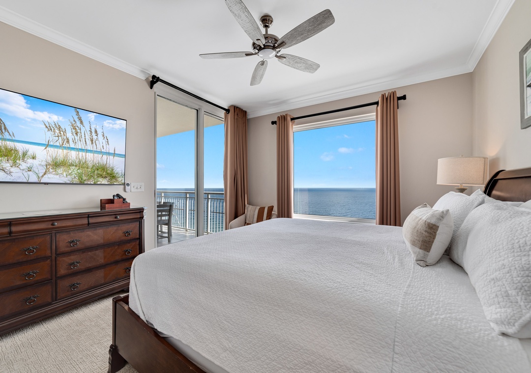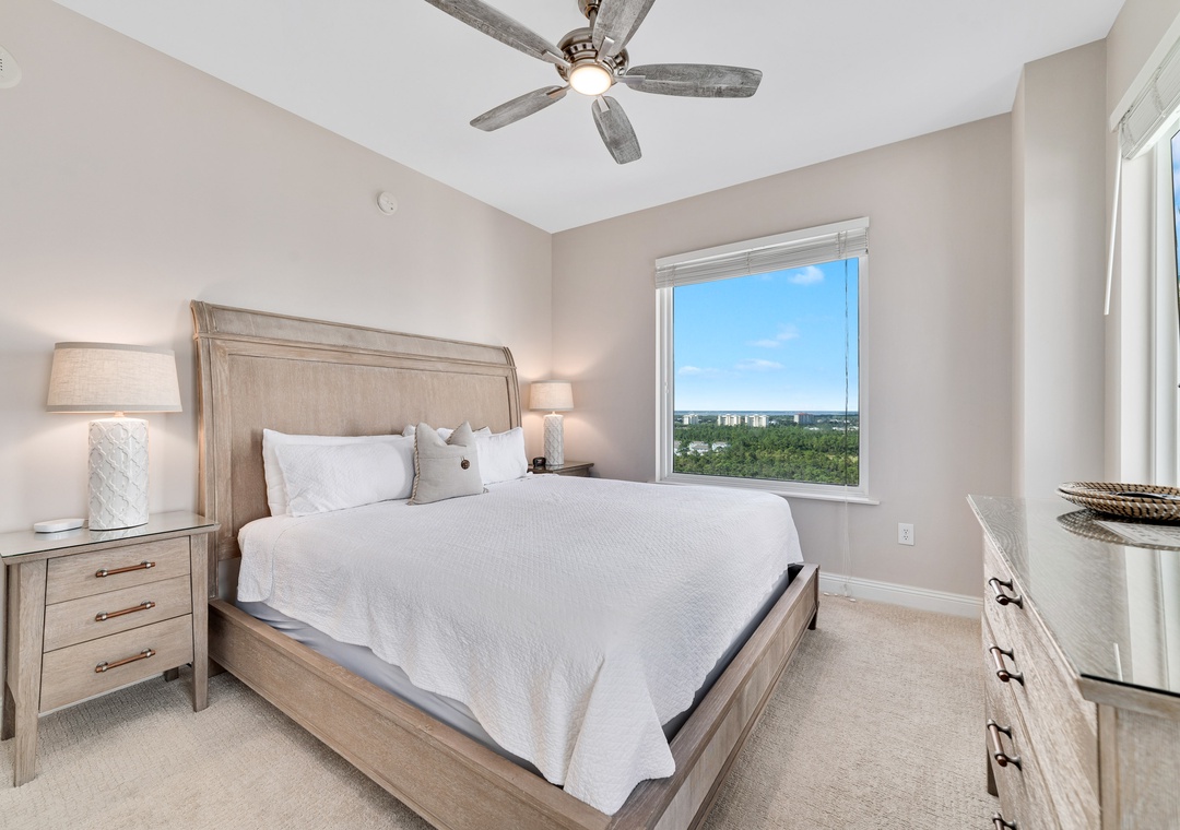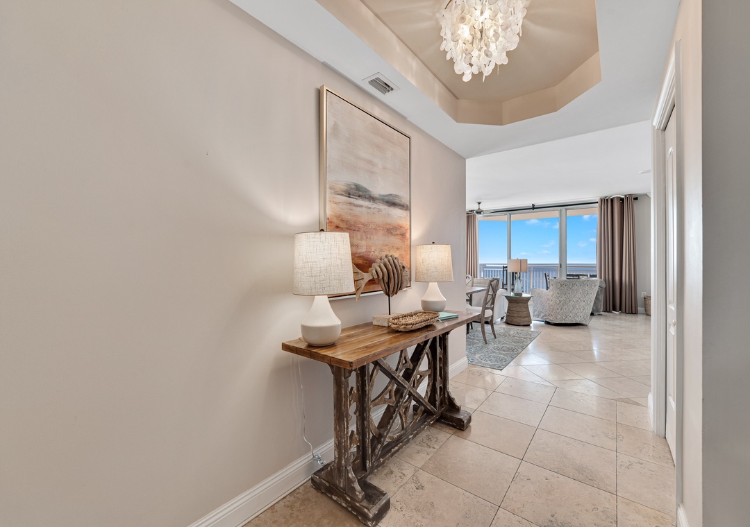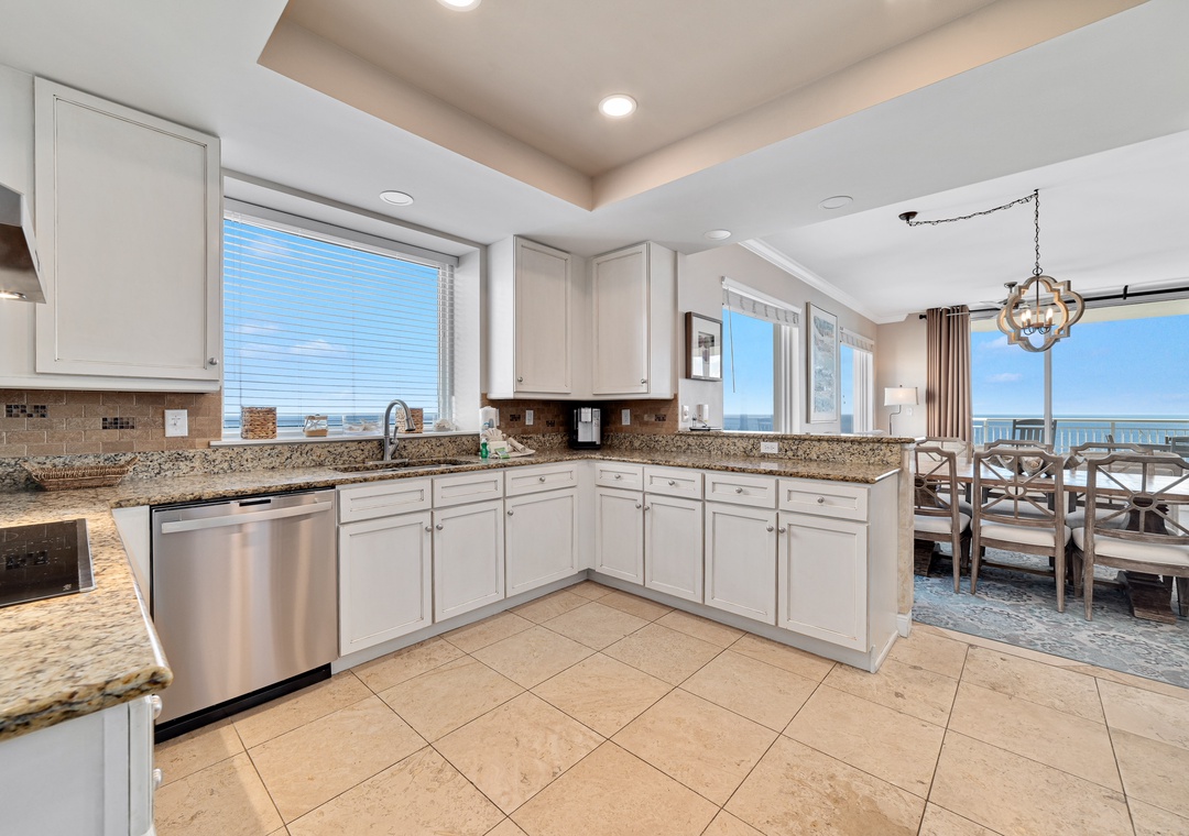 Escape to the pristine shores of Perdido Key and enjoy a dream vacation at this stunning 17th-floor, 4-bedroom, 4-bath condo in the west tower of the luxurious Indigo Resort. Nestled on Perdido Key’s east end, Indigo offers the perfect mix of serene island vibes and nearby entertainment. The gourmet kitchen is equipped with granite countertops, custom cabinetry, and all-new stainless steel GE Profile appliances, including a French door fridge with ice dispenser. Whether you’re enjoying breakfast at the kitchen bar or dinner at the spacious dining table for six, you’ll be treated to spectacular views of the Gulf as the sky transitions from blue to sunset hues.