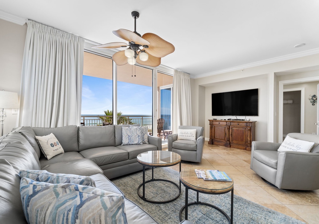 This fabulous 3rd-floor unit encompasses nearly 2,000 square feet of luxury, featuring contemporary beach-chic décor, soothing colors, and soft textures that blend sophistication with comfort. The living area invites you to unwind on the plush leather sectional sofa and chairs, with expansive 9-foot sliding glass doors leading to a covered balcony that offers breathtaking beach views. Enjoy morning coffee at the bar-height coastal-style table or savor meals while taking in the panoramic vistas of the sparkling shoreline. The fully equipped kitchen is a chef's dream, complete with upgraded appliances, granite countertops, and custom wood cabinetry. The master suite boasts a king-size bed and direct balcony access, while the attached glamour bath features a jetted garden tub and a separate shower. With additional king beds in the second and third bedrooms, a full bed, and twin beds in the fourth bedroom, this unit comfortably accommodates up to 12 guests. Experience luxury, relaxation, and pristine natural beauty at Indigo—book your stay today!